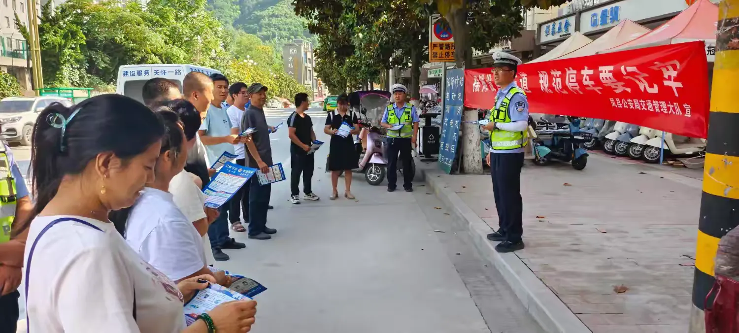 鳳縣大隊民警結合“兩超一違”專項整治和縣城區“一盔一帶”的整治,走上街頭,開展“隨意占道藏隱患”主題交通安全宣傳活動。