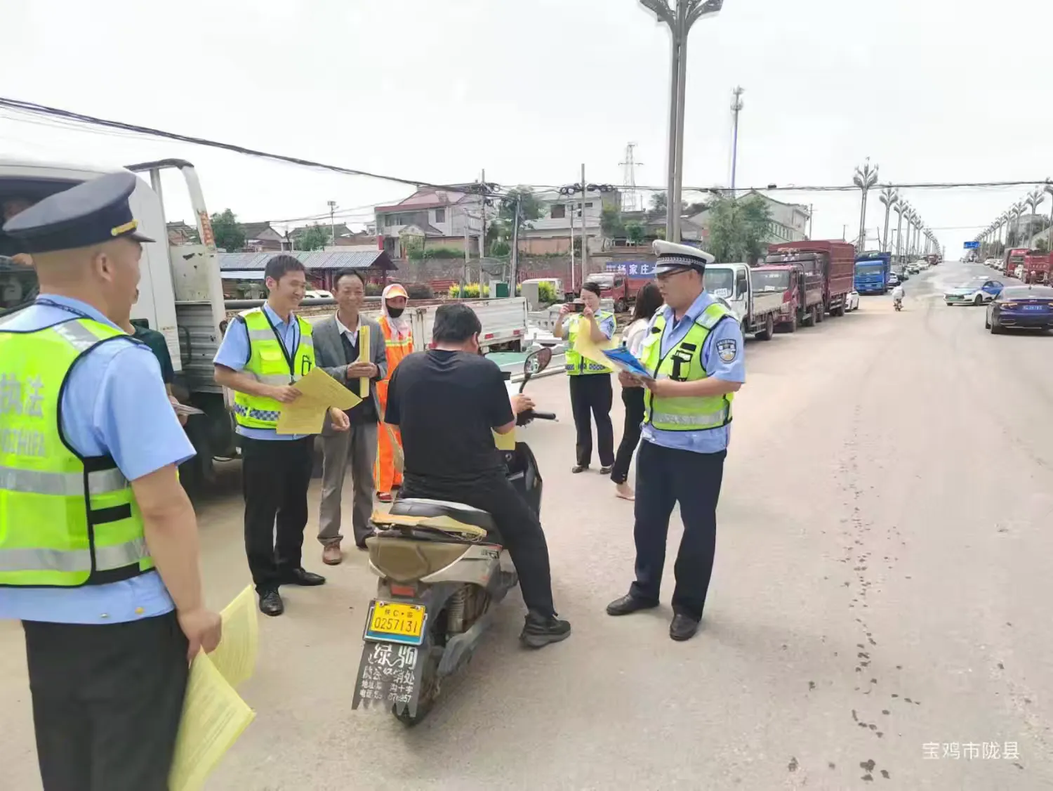 隴縣、岐山大隊聯合路政部門在轄區扎實開展“兩超一違”專項行動宣傳活動,民警通過向過往司乘人員發放宣傳資料,講解超載、超員、違法載人、疲勞駕駛等交通違法行為的嚴重危害,提醒廣大駕駛員自覺遵守交通規則,確保行車安全。