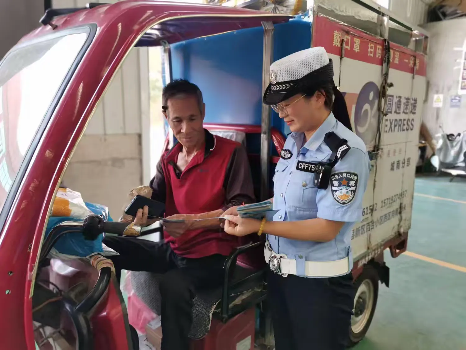 扶風大隊民警走進轄區快遞企業,開展交通安全宣傳活動。