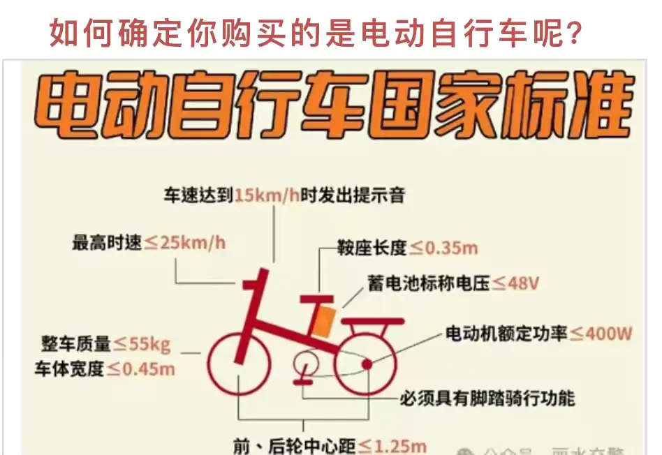 1.具有腳踏騎行功能;2.最高設計車速不超過25km/h;3.整車質量小于或等于55kg;4.蓄電池標稱電壓(額定)小于或等于48V;5.電動機額定連續輸出功率小于或等于400W。