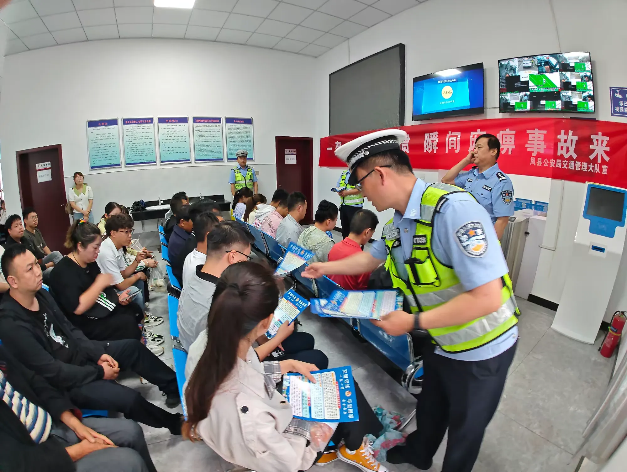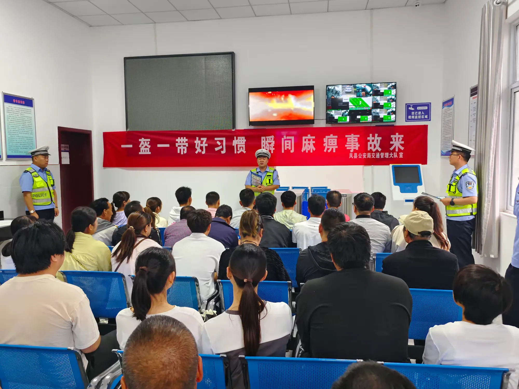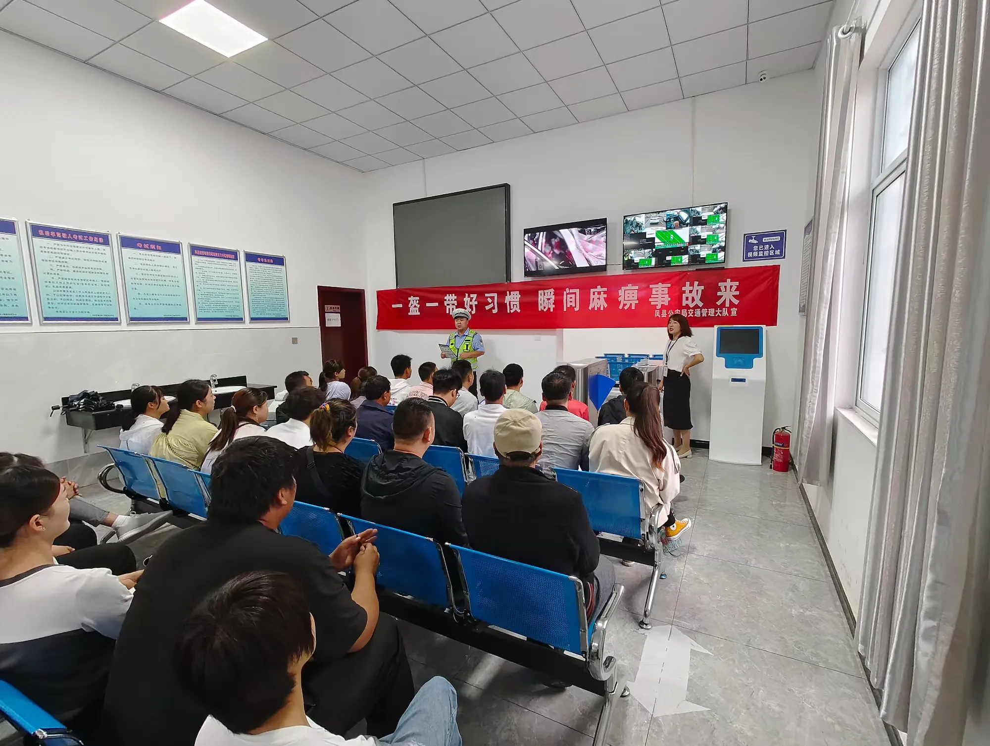 為強化交通安全宣傳教育,把好安全駕駛第一關,從根本上提高駕校教練與學員的交通安全意識,從源頭上預防和減少道路交通事故的發生,7月4日上午,鳳縣公安局交管大隊宣傳民輔警走進鳳誠駕人考試中心,開展“一盔一帶好習慣 瞬間麻痹事故來”主題宣傳,為新學員上了一堂文明交通安全課。