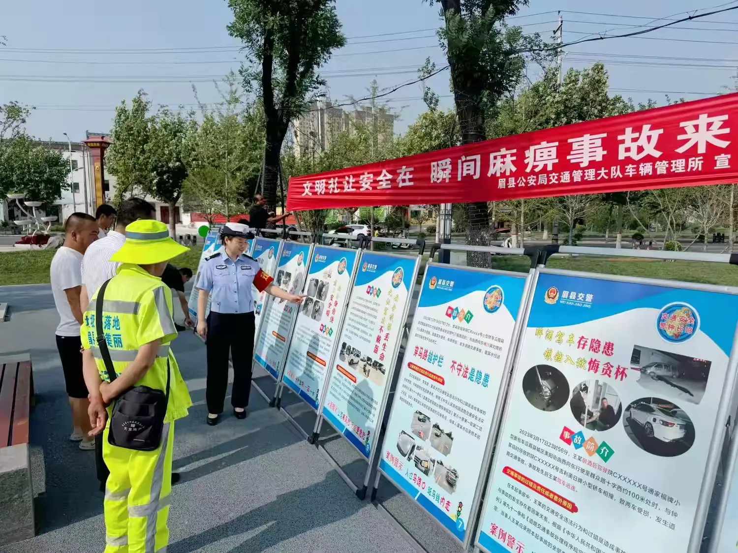 眉縣大隊民警走進城區(qū)白起公園,開展以“文明禮讓安全在、瞬間麻痹事故來”為主題的交通安全宣傳活動。