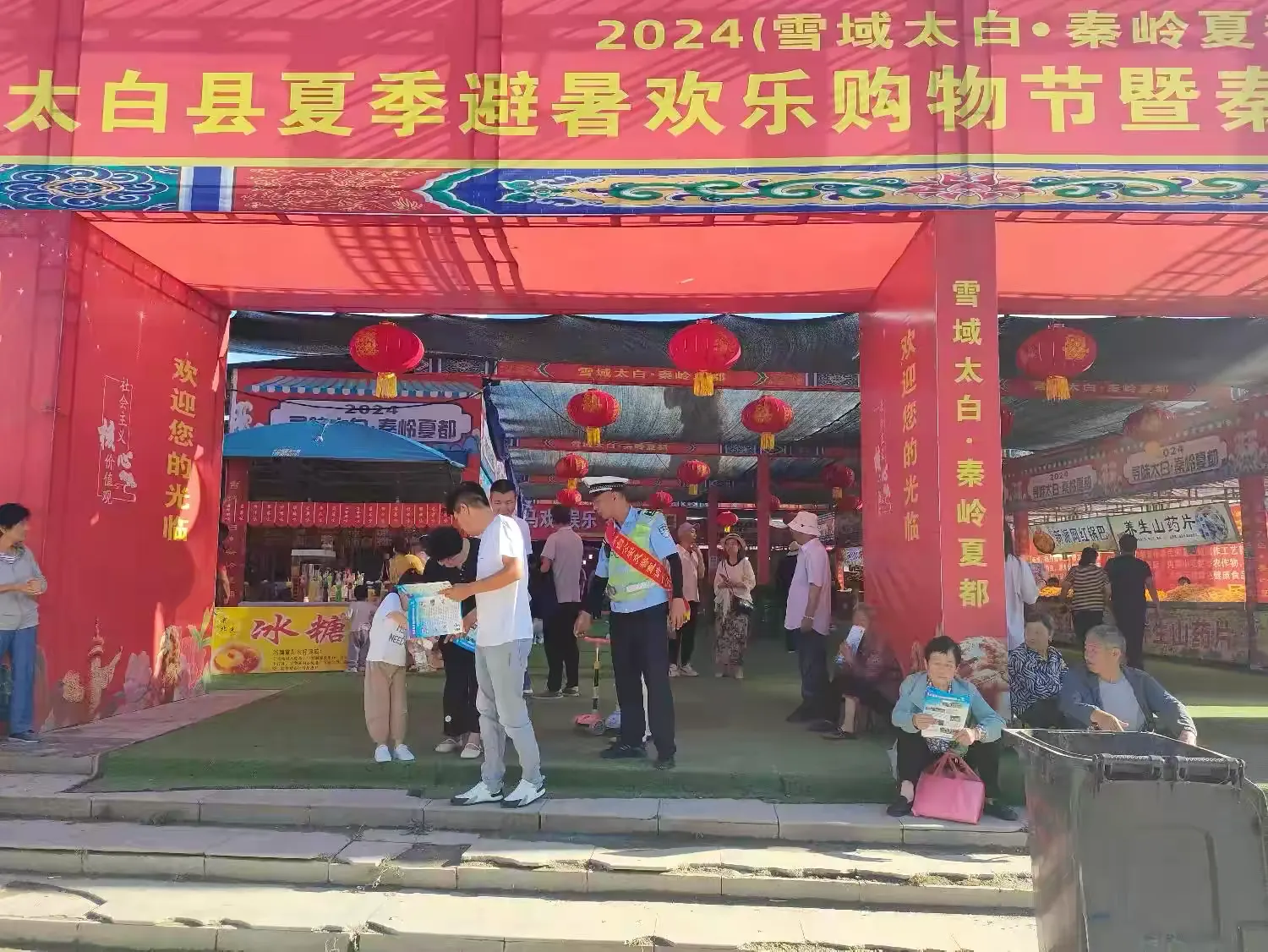 太白大隊民警以2024年太白縣夏季避暑歡樂購物節(jié)暨秦腔文藝匯演活動。麟游大隊借物資交流會活動契機,對前來逛展會、看演出、品美食的群眾積極開展以“文明禮讓安全在、瞬間麻痹事故來”為活動主題的道路交通安全宣傳活動。