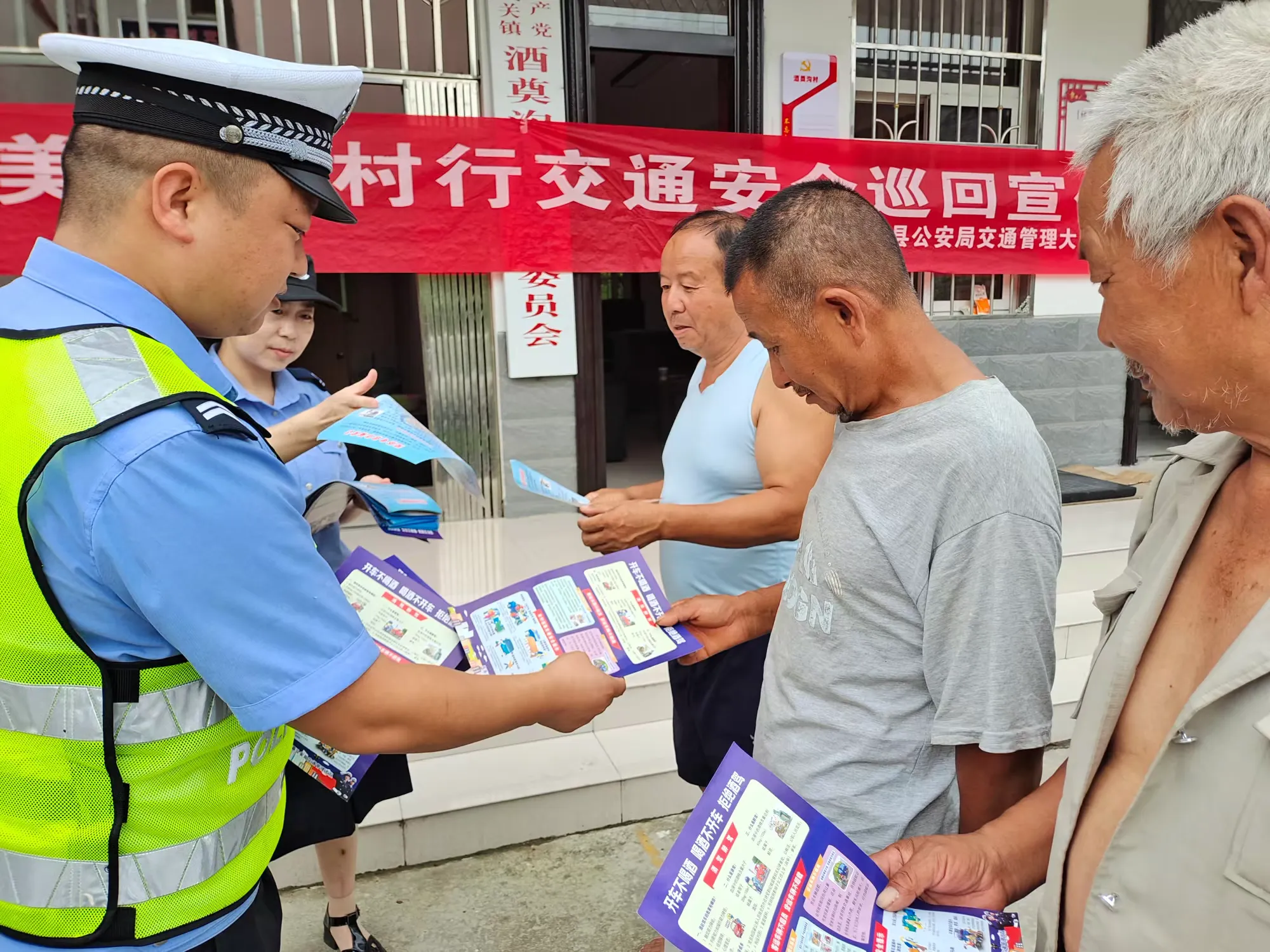 活動中,宣傳民輔警與農(nóng)民朋友拉家常、話農(nóng)活、講安全,通過現(xiàn)場宣講、發(fā)放宣傳資料等方式,用通俗易懂的語言,為群眾普及交通安全知識,講解無證駕駛、酒駕醉駕、騎乘摩托車和騎電動車不佩戴安全頭盔、駕乘汽車不系安全帶、“三超一疲勞”等道路交通違法行為的危害性。期間,民警結(jié)合當(dāng)前正在開展的“夏季行動”,圍繞群眾關(guān)心的酒駕醉駕、闖紅燈、超速等與生活息息相關(guān)的交通安全內(nèi)容進(jìn)行了重點解讀,引導(dǎo)群眾樹立安全文明出行理念,自覺抵制交通陋習(xí),做到平安出行,文明出行。
