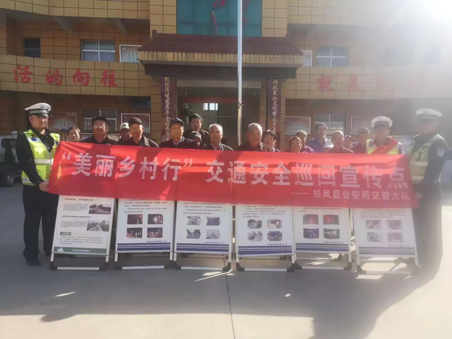 扶風(fēng)、麟游大隊借全市第10個“月月都有122 文明交通遍鄉(xiāng)村”主題宣傳日,針對“一老一小”重點群體,組織開展形式各異的以“千村宣教”為主題的交通安全宣傳。