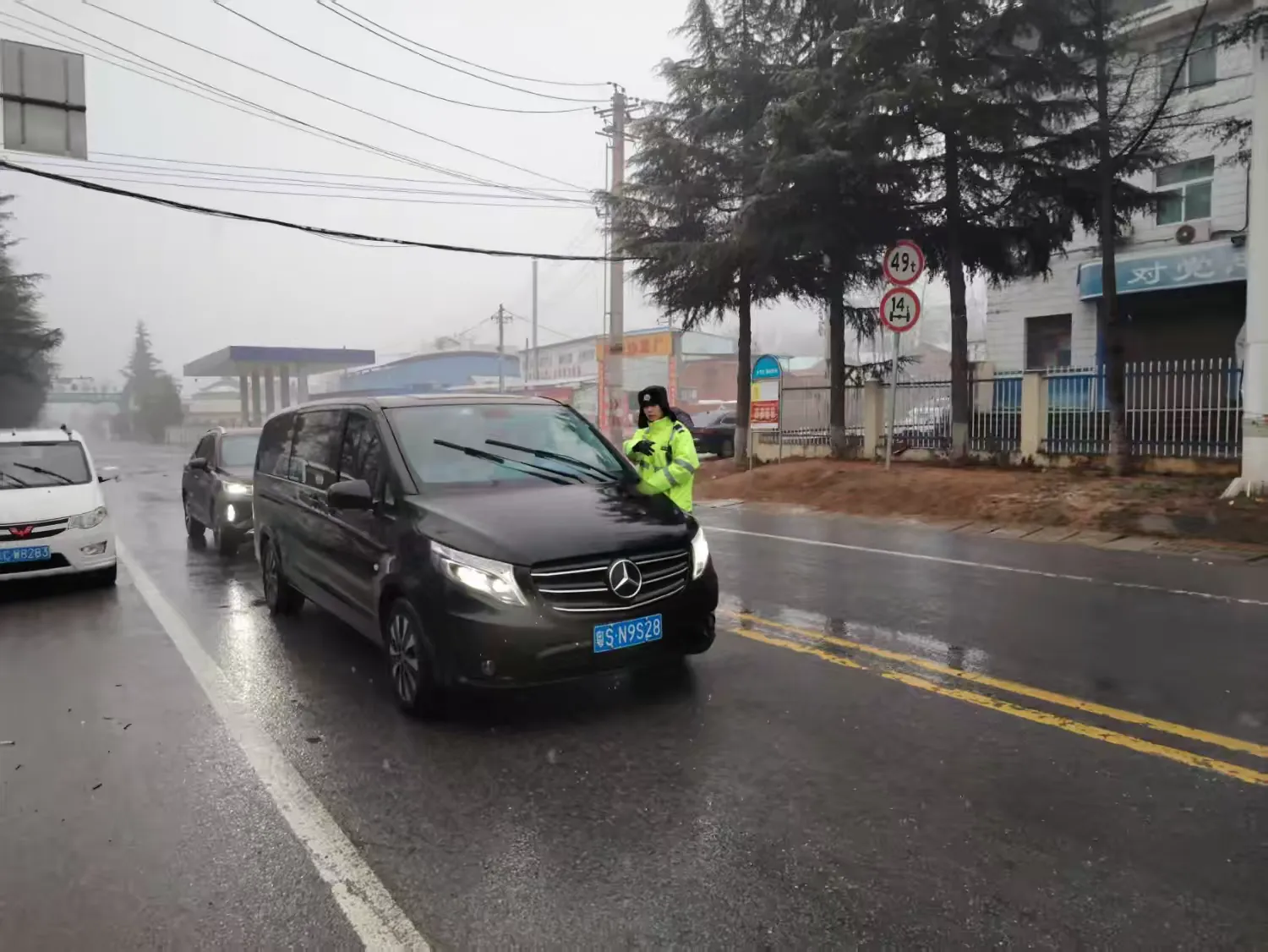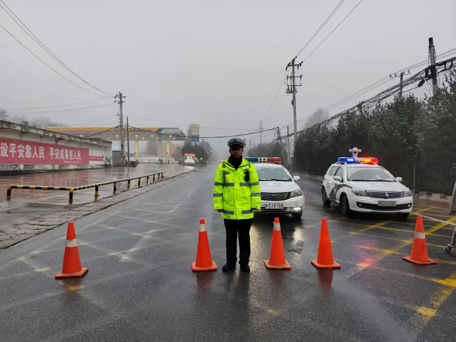 面對惡劣天氣,渭濱大隊桑園中隊全體民輔警迅速行動,堅守在執勤一線,為群眾平安出行保駕護航。