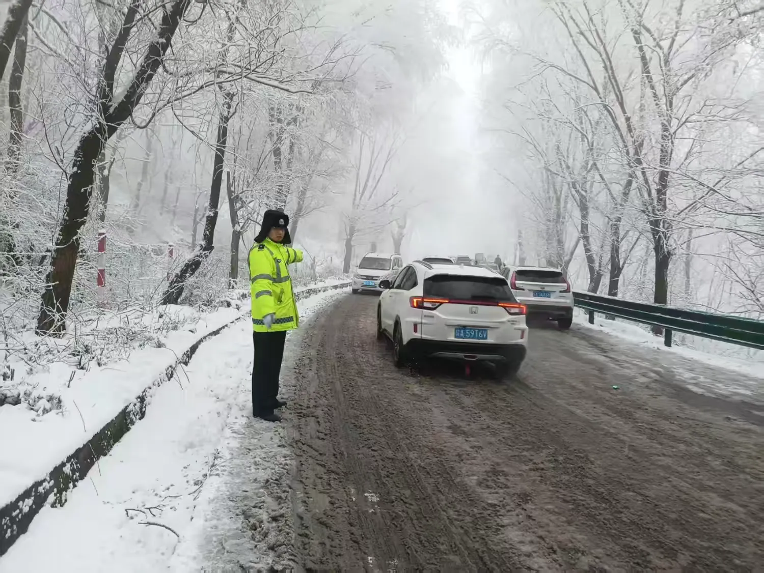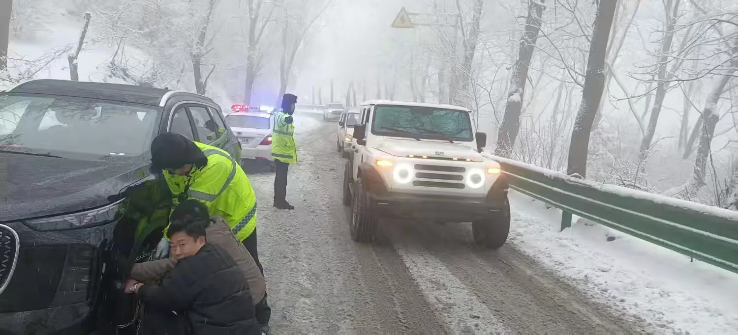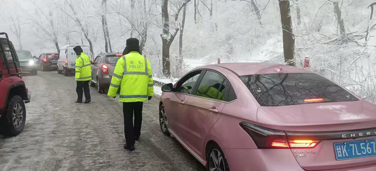 執勤民輔警對轄區重點路段及易積雪結冰路段進行巡邏管控,不間斷進行排查,對發現的事故、擁堵、突發事件快速處理,積極為有困難群眾和車輛提供幫助,確保車輛安全通行。