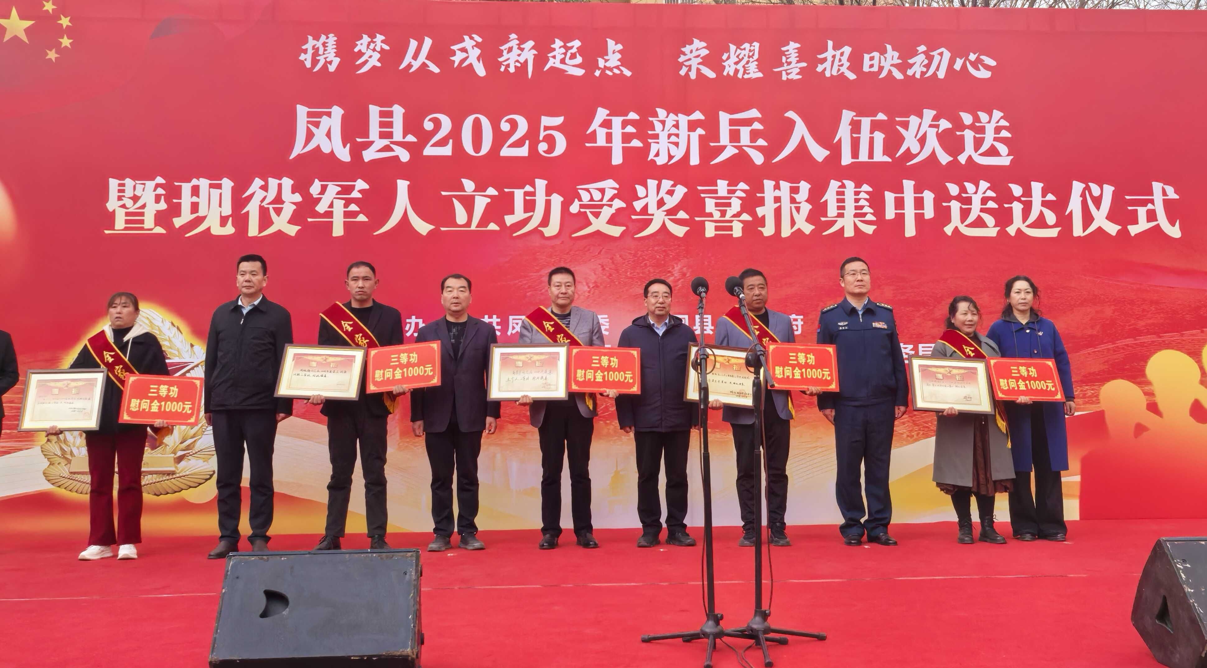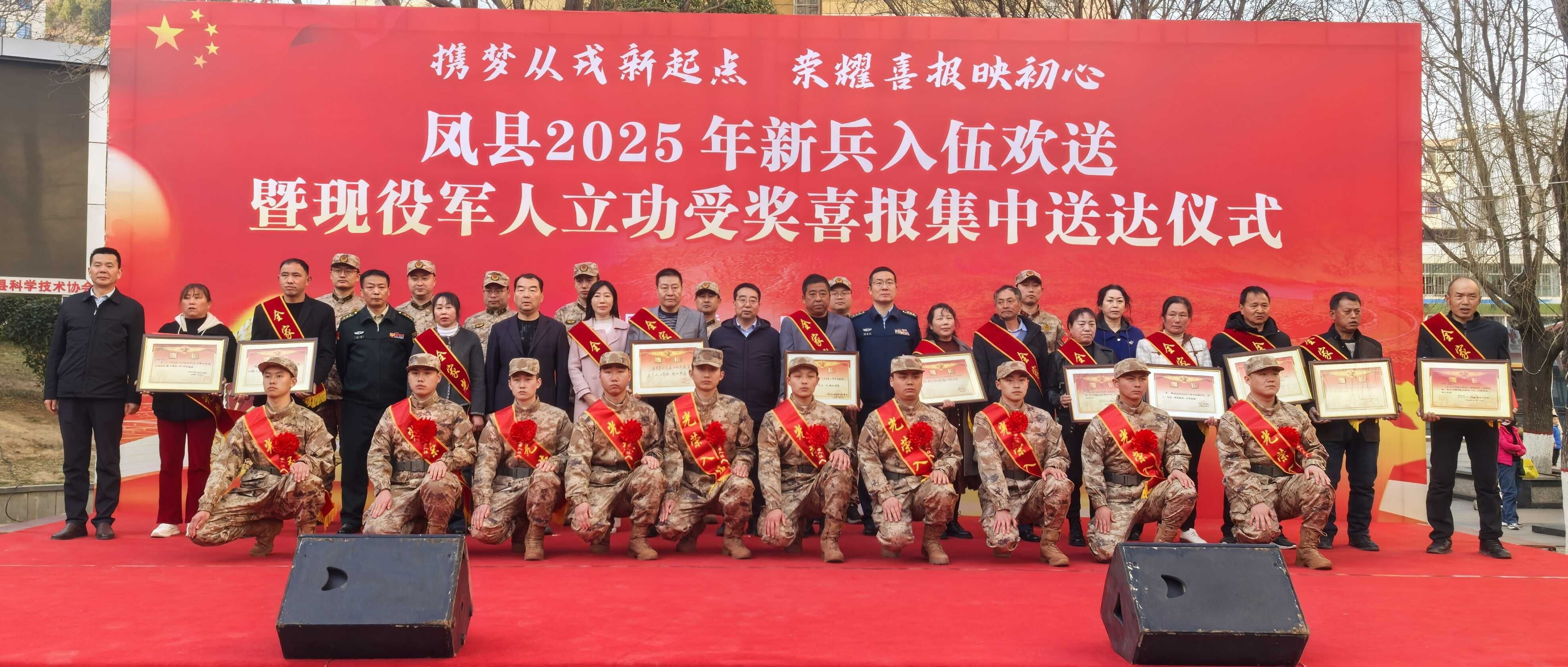 攜夢(mèng)從戎新起點(diǎn),榮耀喜報(bào)映初心。3月17日下午,鳳縣舉行2025年新兵入伍歡送暨現(xiàn)役軍人立功受獎(jiǎng)喜報(bào)集中送達(dá)儀式??h委常委、常務(wù)副縣長(zhǎng),縣委常委、人武部部長(zhǎng),縣人大常委會(huì)副主任、縣政協(xié)副主席、縣人民武裝部政委、縣民政和退役軍人事務(wù)局局長(zhǎng)出席活動(dòng)。
