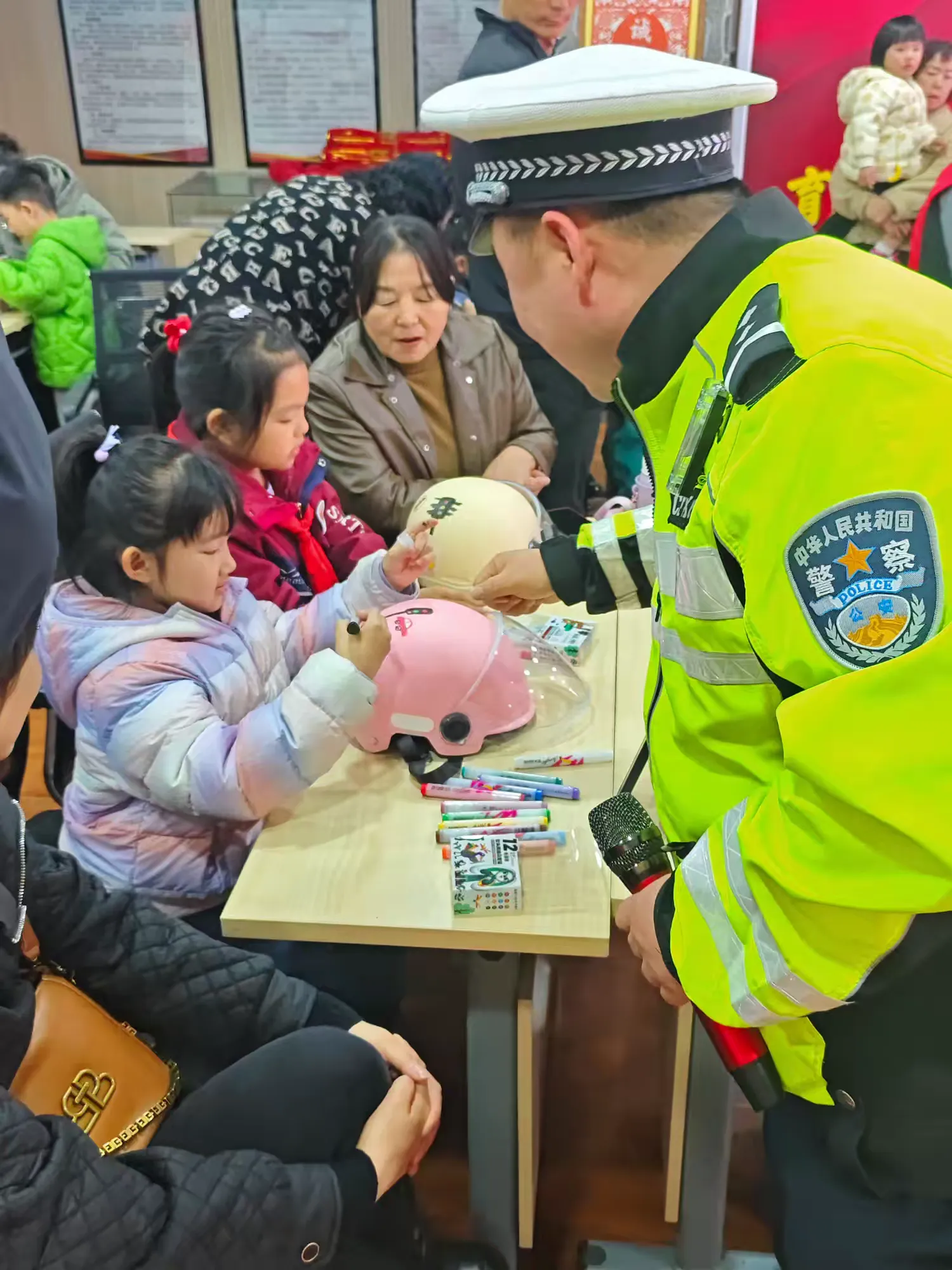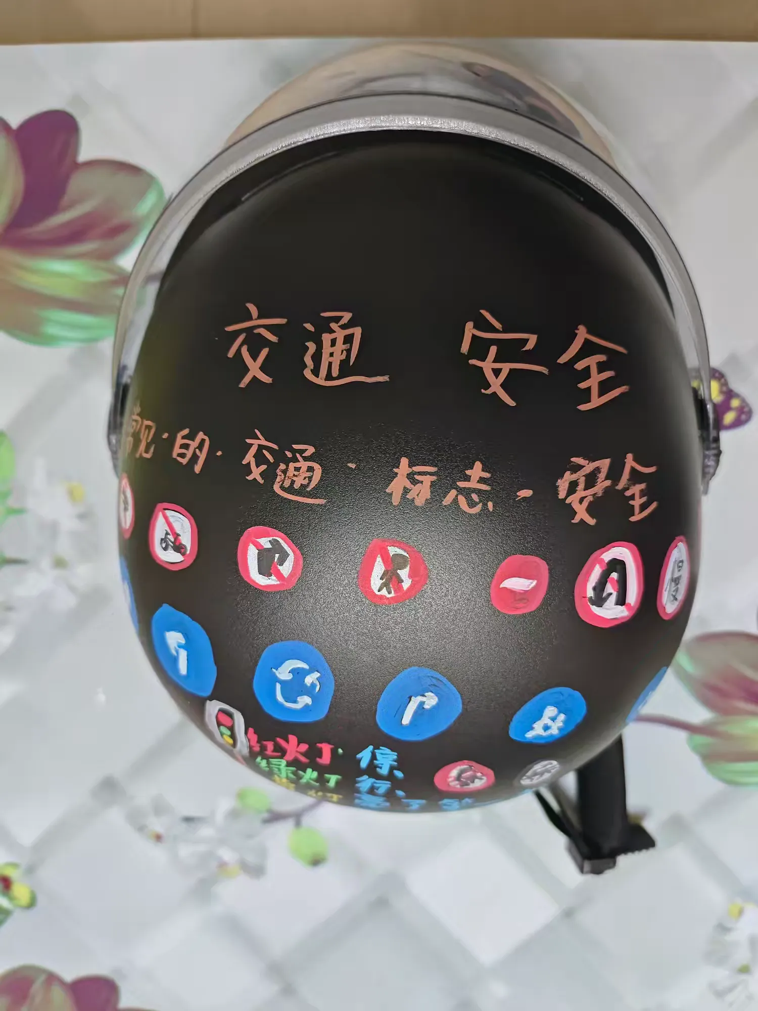 在簡短的講座之后,活動的重頭戲——“共創彩繪頭盔”環節開始了,文明實踐中心的志愿者們為每個家庭分發彩色頭盔與彩繪工具,在場的親子家庭以“文明交通 你我同行”為主題進行安全帽彩繪創作。在志愿者的引導下,同學們紛紛拿起畫筆,利用五顏六色的彩筆發揮創造力,全神貫注地繪制著屬于自己的“定制款”頭盔,用滿滿的愛意為出行安全畫上最美“保護色”。