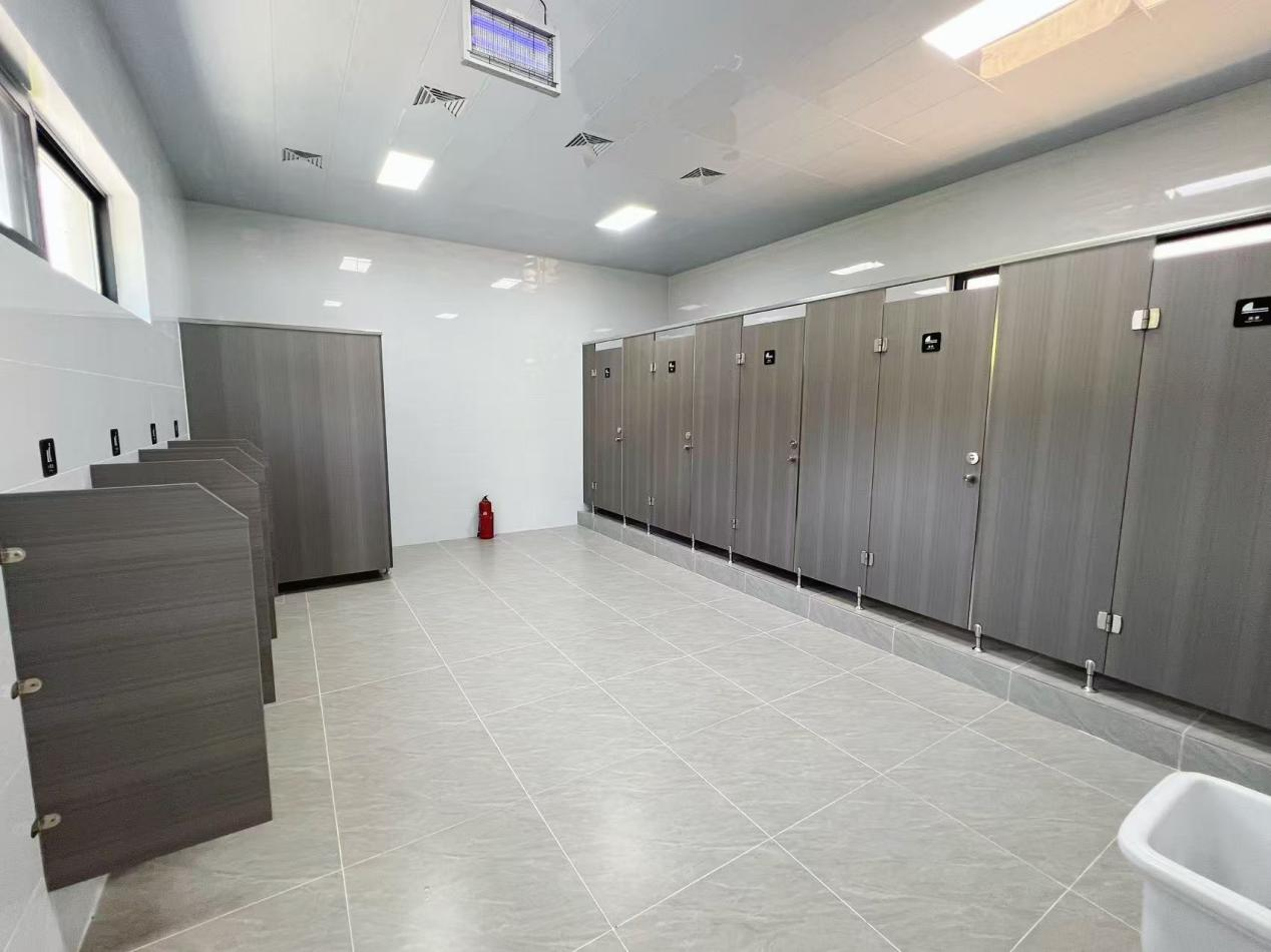 步入公廁,簡約時尚的外觀設計與園區景致相得益彰,內部空間更是將綠色環保理念融入每一處細節。高低錯落的洗手池搭配智能感應烘干機,既滿足不同群體的使用需求,又以科技手段實現節能減耗,還有專為殘障人士打造的無障礙設施,白鋼扶手線條流暢、堅固耐用,搭配防滑地面與寬敞通道,讓特殊群體更安心。除此之外,柔和的燈光與清新的色彩搭配,營造出溫馨雅致的如廁環境,徹底打破傳統公廁的刻板印象。