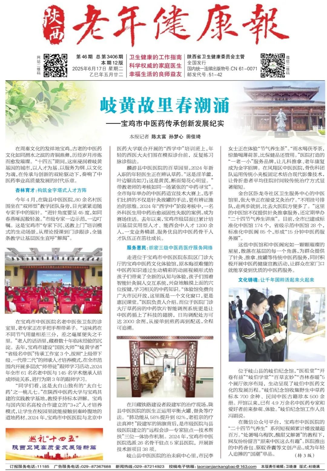 當90后護士在百草科普園里輕撫五味子枝葉,當智能藥柜與傳統戥子在同一個藥房里“共處”,當岐伯文化研討會的成果通過5G信號傳向全球,古老的中醫藥正在這座城市里開枝散葉。寶雞的實踐證明,中醫藥不是博物館里的標本,而是流動的文化長河,只有扎根人民、擁抱時代,才能在傳承中創新,在創新中傳承。(陜西老年健康報)