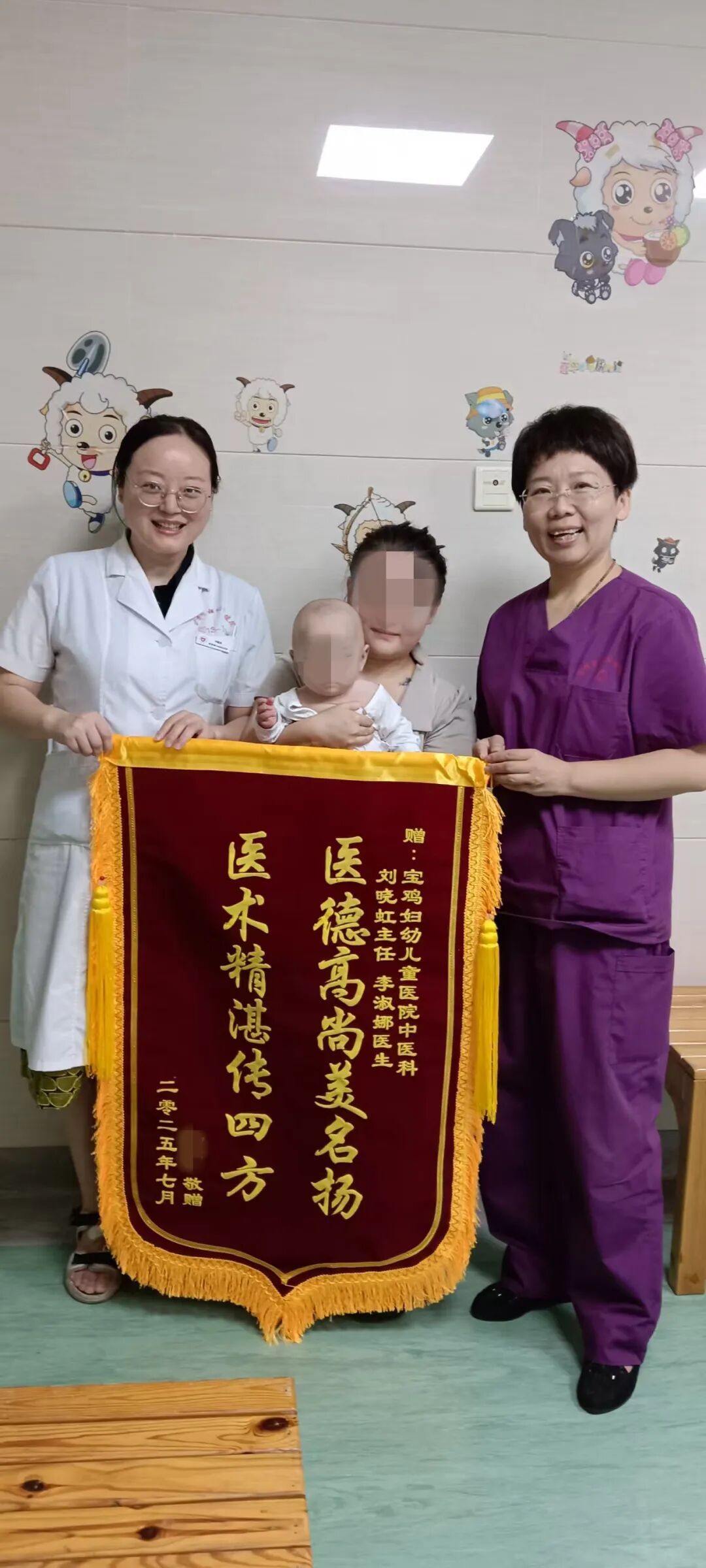 近日,曾被確診為肌性斜頸的患兒家長王女士(化名),將一面寫有“醫德高尚美名揚,醫術精湛傳四方”的錦旗,鄭重地交到寶雞市婦幼保健院兒童醫院中醫科醫生手中,感謝他們用中醫治療讓孩子擺脫病痛。