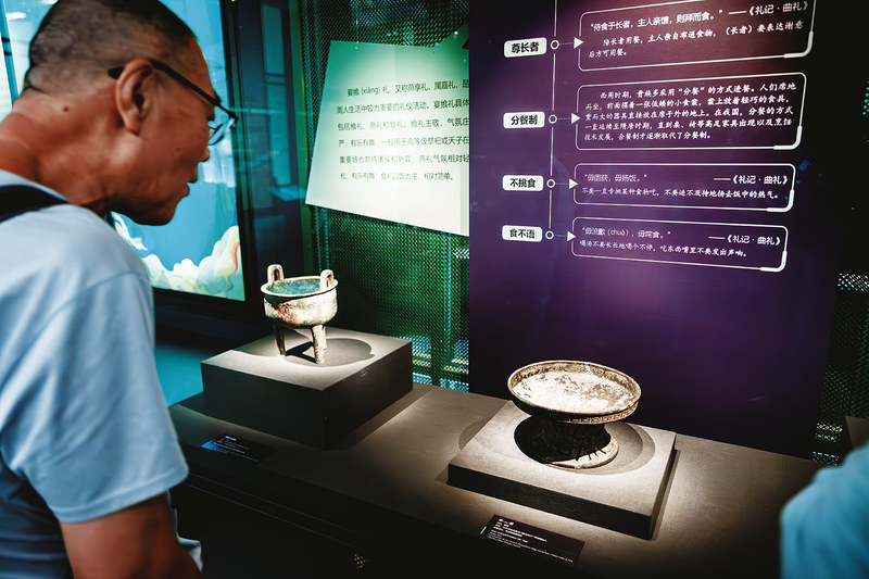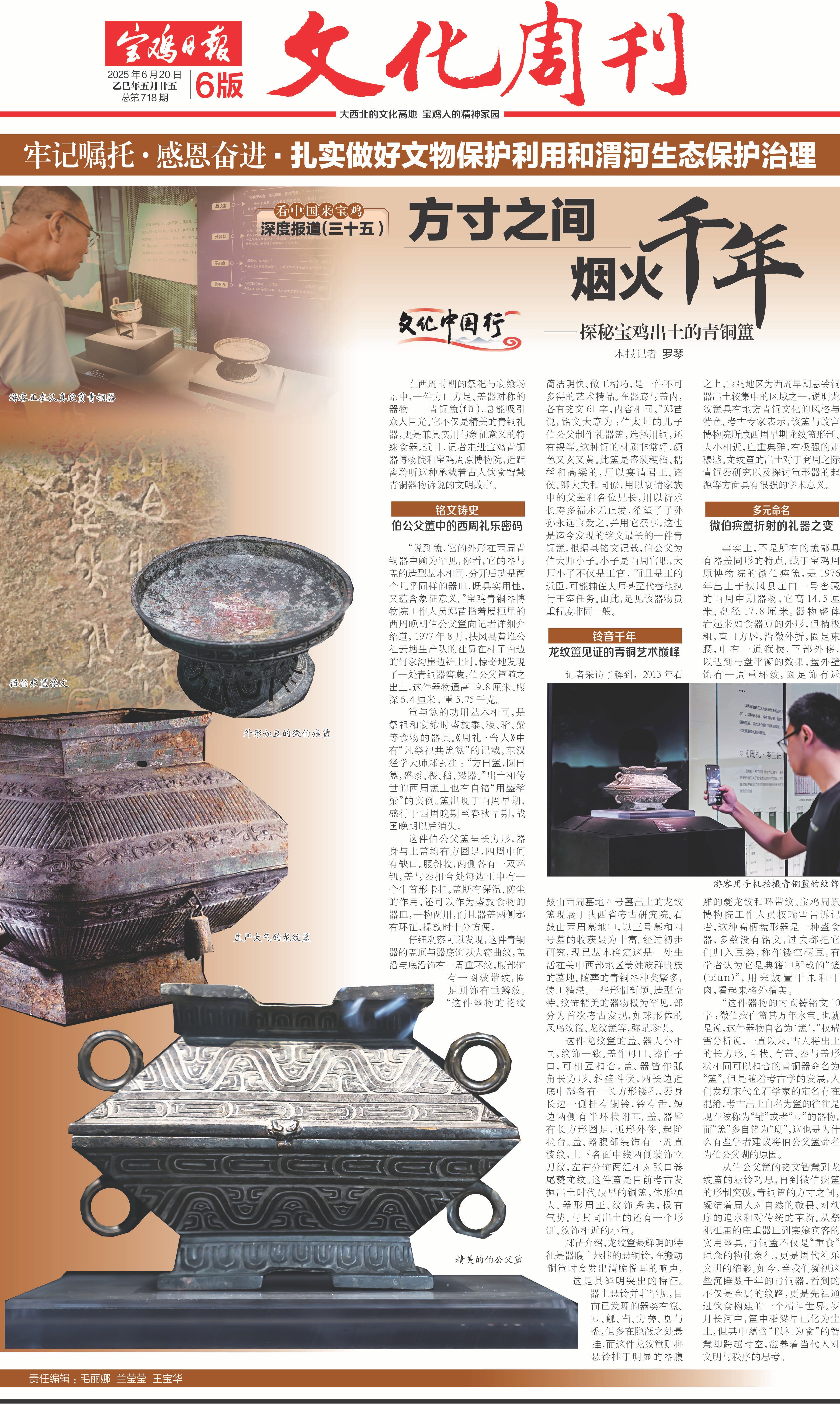 從伯公父簠的銘文智慧到龍紋簠的懸鈴巧思,再到微伯疒興簠的形制突破,青銅簠的方寸之間,凝結著周人對自然的敬畏、對秩序的追求和對傳統的革新。從祭祀祖廟的莊重器皿到宴饗賓客的實用器具,青銅簠不僅是“重食”理念的物化象征,更是周代禮樂文明的縮影。如今,當我們凝視這些沉睡數千年的青銅器,看到的不僅是金屬的紋路,更是先祖通過飲食構建的一個精神世界。歲月長河中,簠中稻粱早已化為塵土,但其中蘊含“以禮為食”的智慧卻跨越時空,滋養著當代人對文明與秩序的思考。(寶雞融媒 羅琴)