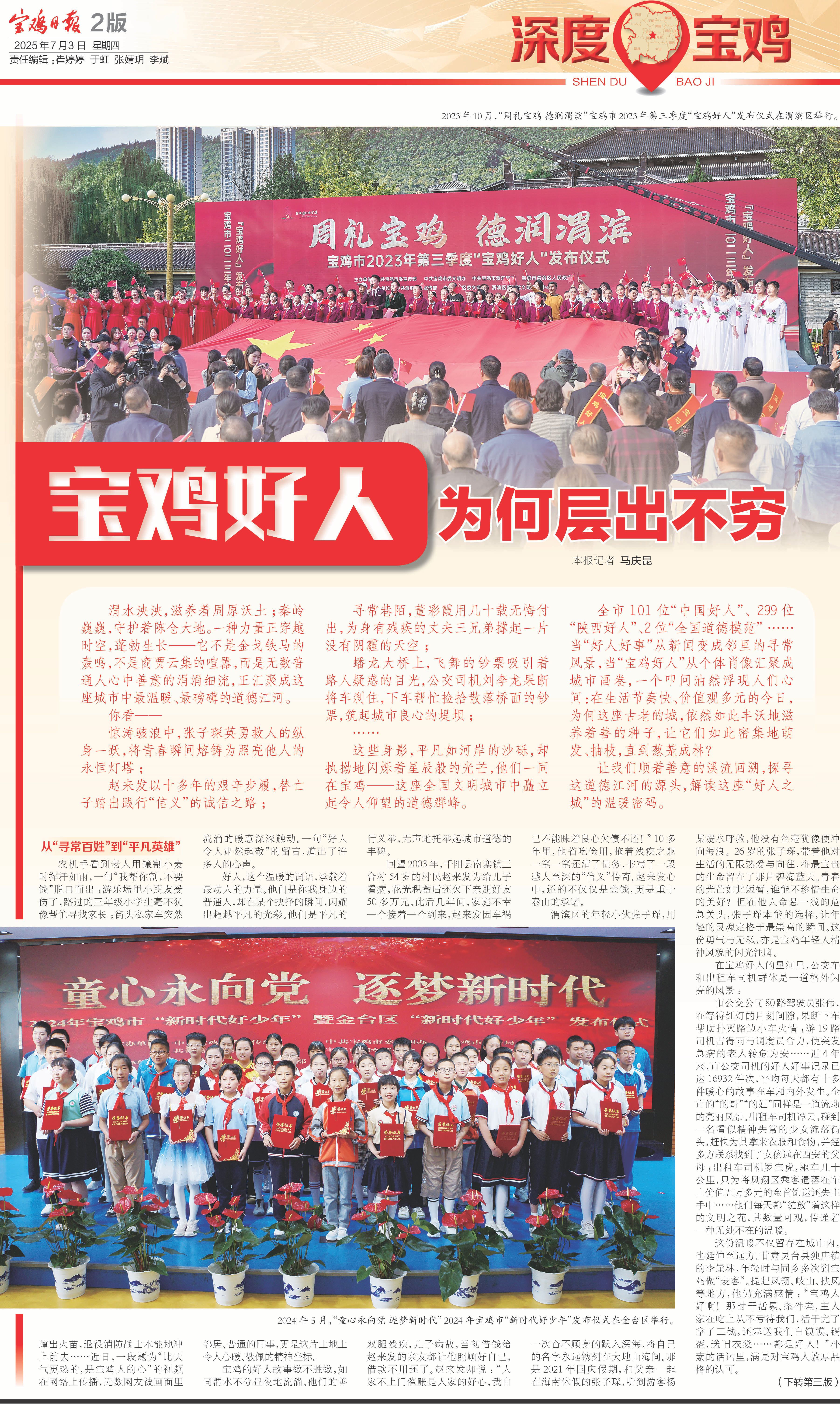 這些身影,平凡如河岸的沙礫,卻執(zhí)拗地閃爍著星辰般的光芒,他們一同在寶雞——這座全國(guó)文明城市中矗立起令人仰望的道德群峰。