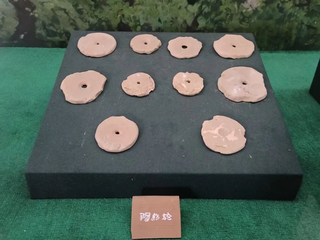 寶雞北首嶺遺址出土的用陶片制作的圓餅形紡輪。