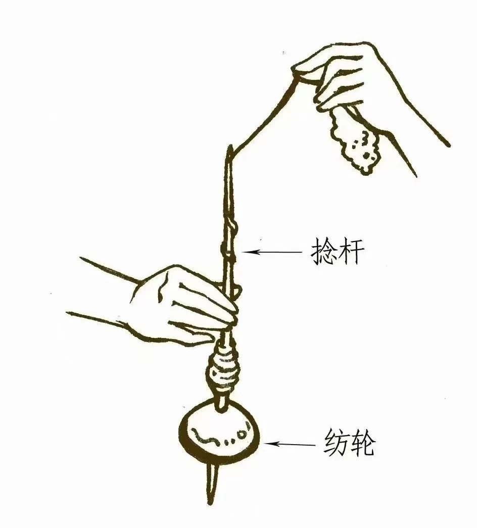 遠(yuǎn)古先民們?nèi)绾沃谱髀槔K?距今七千年前,生活在今陜西省寶雞市金臺(tái)區(qū)金陵河西岸一帶的北首嶺人將麻的莖稈采集后,經(jīng)過浸泡、剝洗提取出植物纖維。他們將一小段纖維,捻成細(xì)線,系在捻?xiàng)U的一頭,單手令捻?xiàng)U懸空再連續(xù)搓動(dòng),捻?xiàng)U另一頭的陶紡輪利用自身重力所產(chǎn)生的慣性,讓細(xì)線后端的纖維纏繞在捻?xiàng)U之上,迅速成線,讓原本的一團(tuán)亂麻,最終成為粗細(xì)均勻的麻線。麻線的出現(xiàn)為結(jié)繩記事乃至紡織的發(fā)展提供了便利。