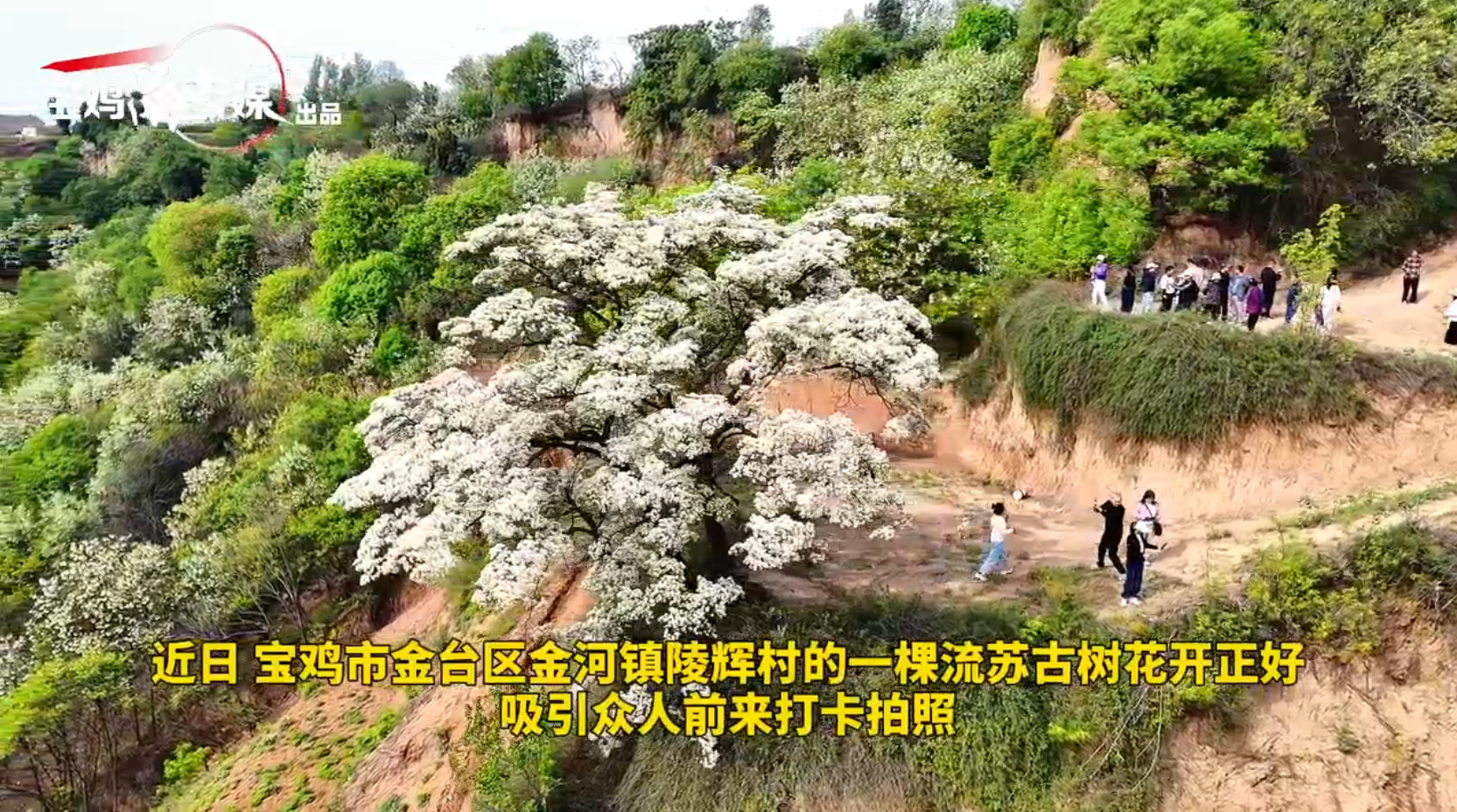 近日,寶雞市金臺區金河鎮陵輝村的一棵流蘇古樹花開正好,吸引眾人前來打卡拍照。(寶雞融媒 周育華)