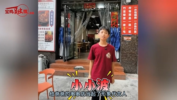 日前,寶雞一名11歲的小男孩大膽出鏡,給爸爸的串串店當起了“形象代言人”,網友紛紛夸贊其臺風穩健,語言流暢,也為其替父分擔生活重擔的孝心感動。(寶雞融媒 羅君)