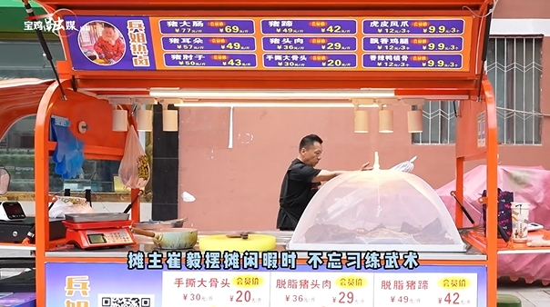 在寶雞市渭工路街邊擺攤賣鹵肉的攤主崔毅,曾是“功夫影星”,接拍過《少林寺弟子》《武當》等多部武俠影片,后在上海投資經商。其人生經歷跌宕起伏,有過輝煌巔峰,有過失意落魄。如今,和妻子在街邊擺攤賣鹵肉,盡管日子艱辛,但他不向命運低頭,追求幸福生活的“人間煙火”。(寶雞融媒 劉建偉)