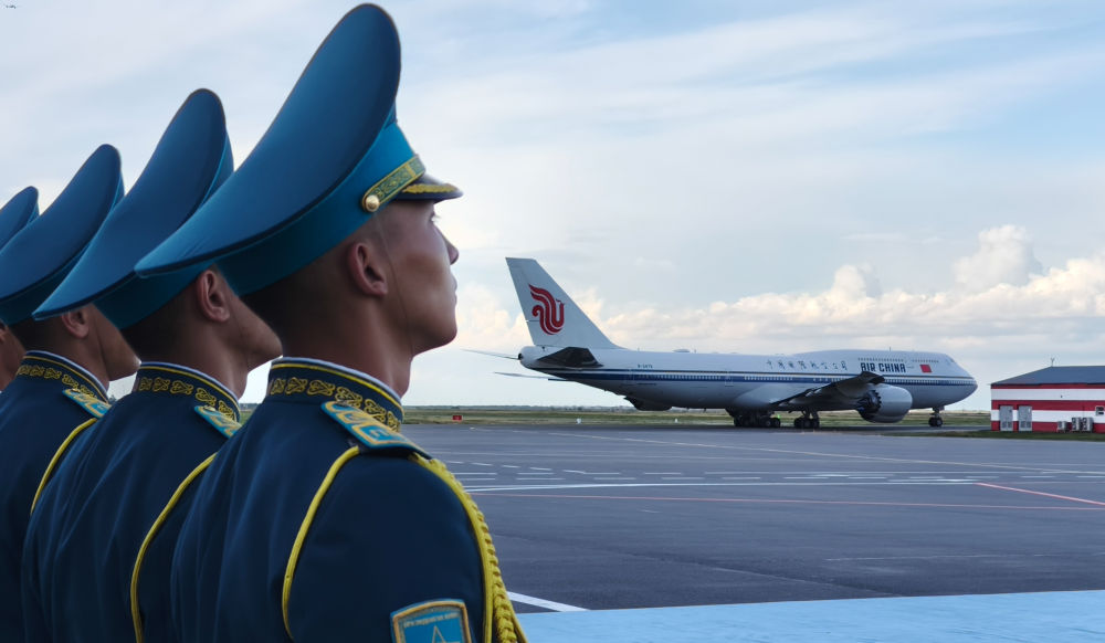 習近平專機起飛后,哈薩克斯坦三架空軍戰機升空護航。