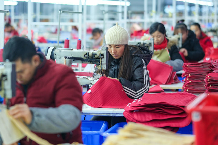 2024年1月18日,社區居民在紅安社區的鄉村振興就業車間工作。紅安社區是由易地搬遷安置區單獨成立的新社區,位于湖南省湘西土家族苗族自治州鳳凰縣禾庫鎮。新華社記者 張鋮 攝