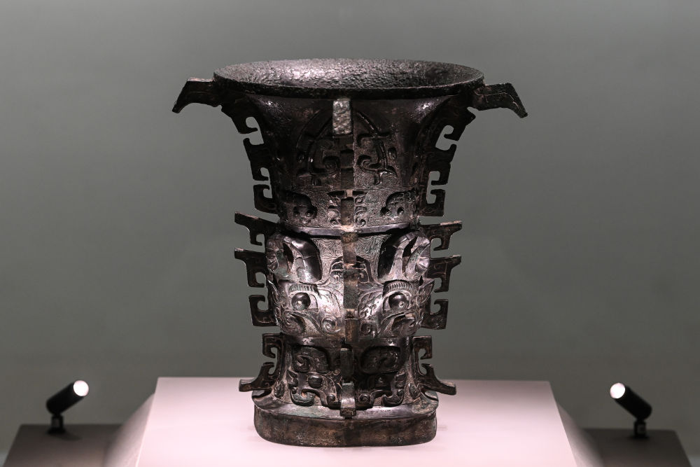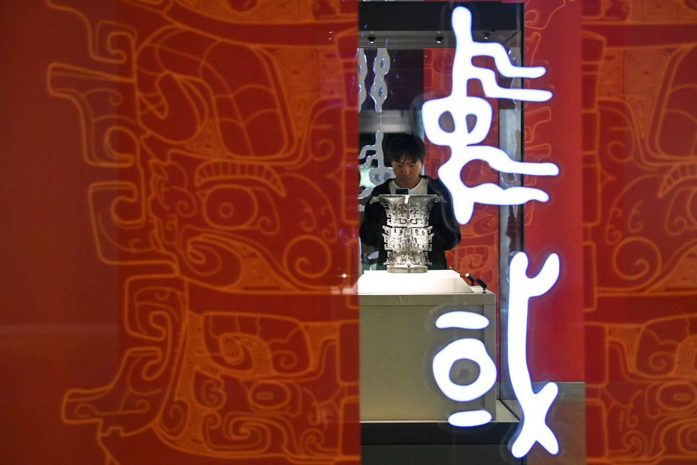 近日,游客在寶雞青銅器博物院參觀何尊。新華社記者 鄒競一 攝 今年5月,游客在寶雞青銅器博物院參觀何尊。新華社記者 邵瑞 攝