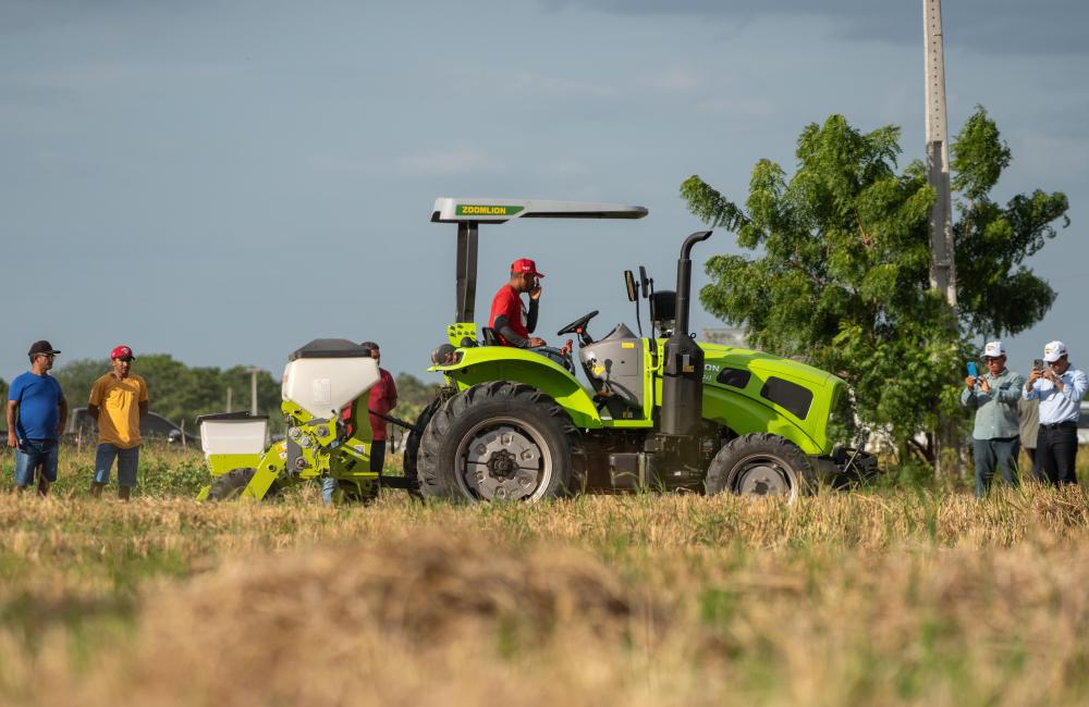2024年2月2日,在巴西阿波迪的中巴農業機械化合作示范農場,一款中國生產的農機在田間示范作業,吸引了人們觀看。中巴農業機械化合作示范農場旨在助力巴西農業生產,促進中小農戶減貧和鄉村振興。