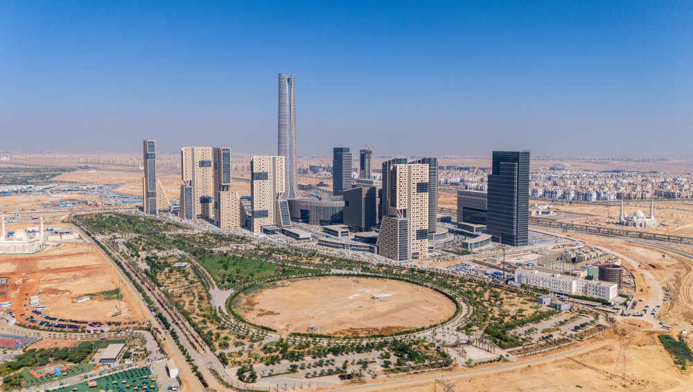 這是埃及新行政首都中央商務區(2024年8月31日攝,無人機照片)。埃及新行政首都中央商務區項目位于首都開羅以東約50公里,是埃及國家復興計劃的重要工程,也是中埃共建“一帶一路”的重點工程。新華社發(黎炳宏攝)