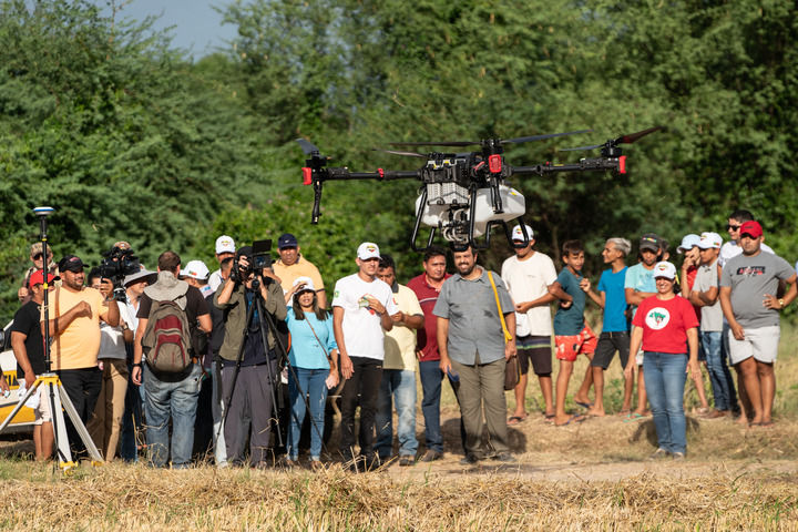 2024年2月2日,在巴西阿波迪,人們觀看一款中國生產的農用無人機。當日,中巴農業機械化合作示范項目啟動儀式在巴西阿波迪舉行,第一批來自中國7家農機企業共31臺(件)設備正式交付給巴西農村勞動者組織。新華社記者 王天聰 攝