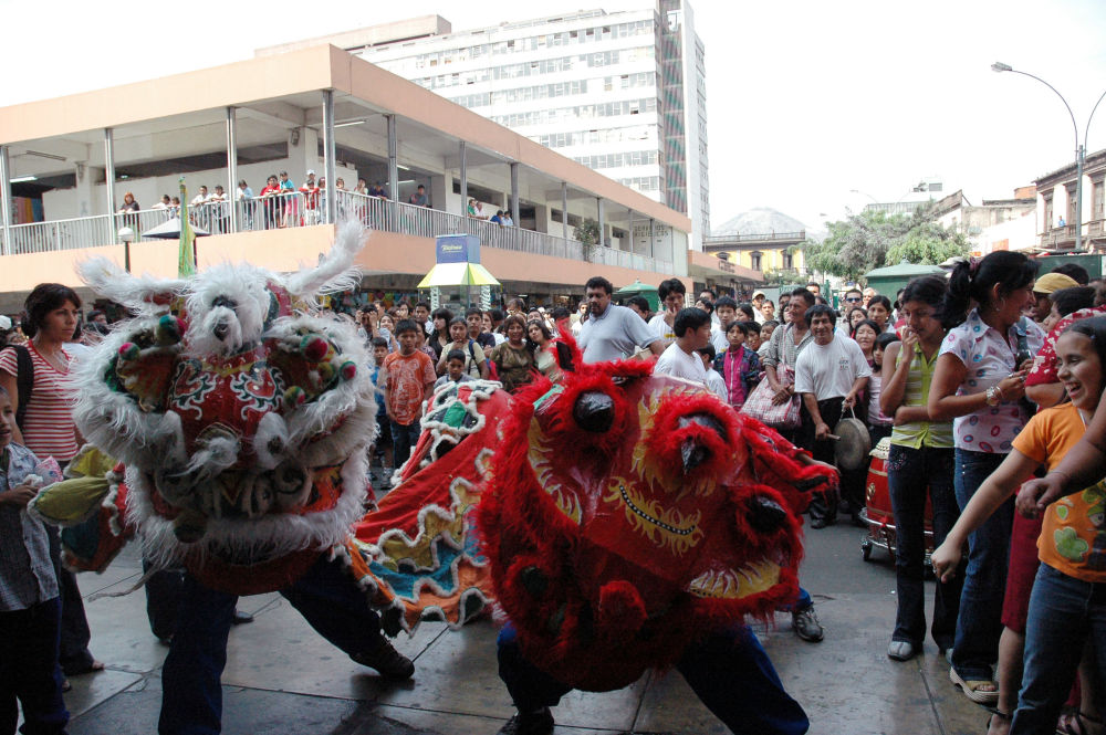 2006年1月28日農歷除夕當天,華僑舞獅團在秘魯利馬唐人街上舞獅拜年。