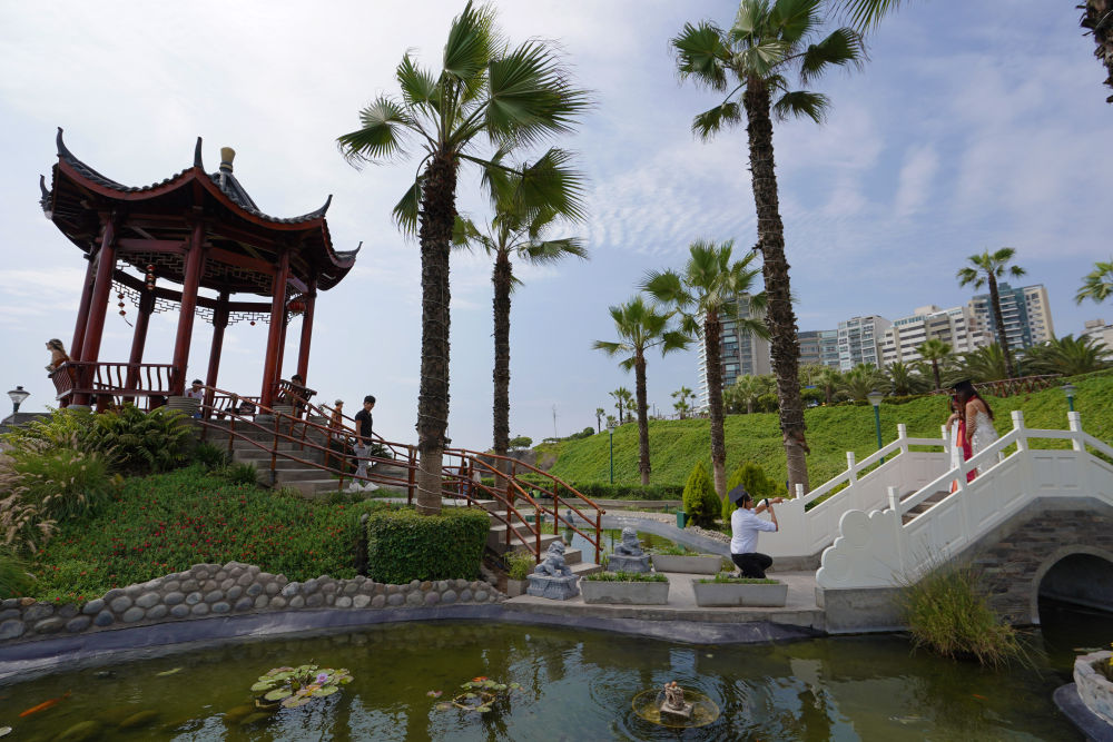 2024年11月9日,人們在秘魯首都利馬米拉弗洛雷斯區的中國公園內休閑。