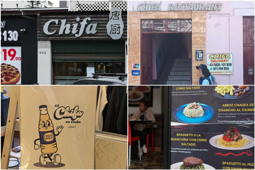 綿延不斷的人文交流,讓秘魯的飲食帶上了明顯的中餐印記:中餐館在秘魯被稱作“Chifa”(吃飯)(左上、右上)。炒飯(Chaufa)作為常規食物,登上了大多數當地餐館的菜單(右下)。Chifa一詞,還被利馬的年輕畫家化用為文化符號,與本土飲料“印加可樂”一起融入到藝術創作中(左下)。