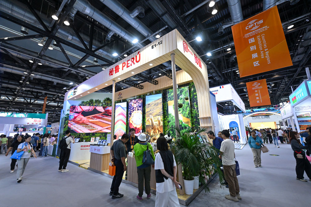 這是2024年9月15日在北京服貿會國家會議中心展區拍攝的秘魯展臺。