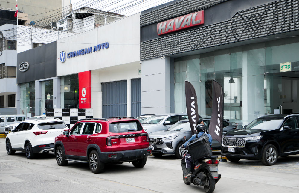這是在秘魯利馬市區拍攝的幾家毗鄰的中國品牌汽車銷售商門店(2024年11月12日攝)。