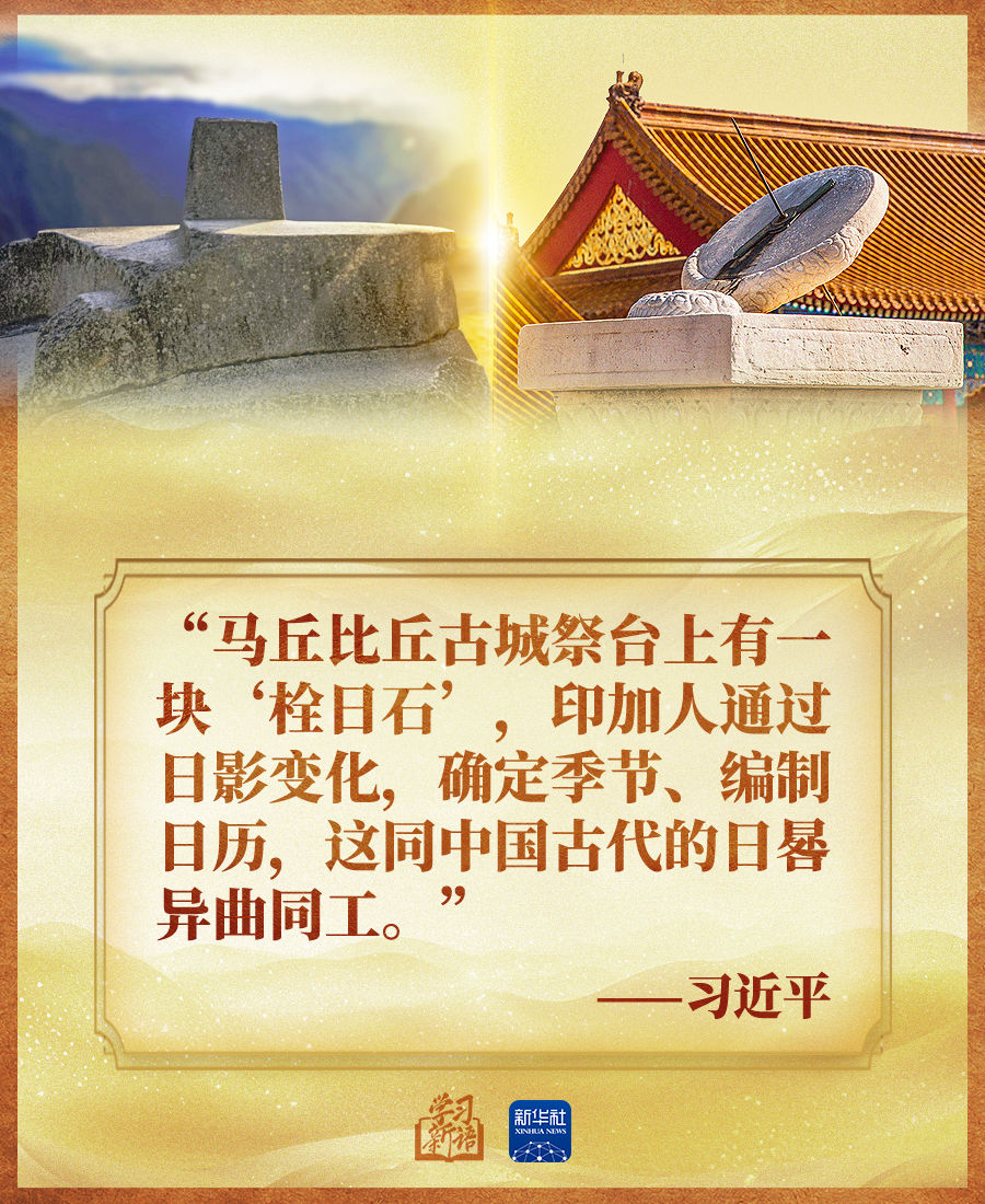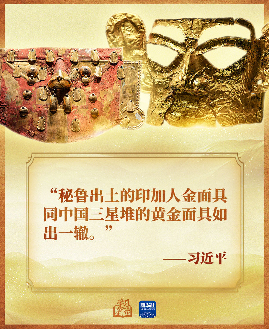 “中外考古學(xué)界認(rèn)為,中華文明和美洲文明實(shí)際上是同一祖先的后代在不同時(shí)代、不同地點(diǎn)的產(chǎn)物。文明的智慧讓我們理念相近、心靈相通。”(新華社)