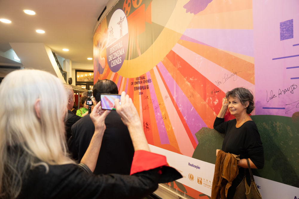 ??11月4日,在巴西里約熱內(nèi)盧奧迪恩影院內(nèi),觀眾在海報上簽名后留影。2024巴西中國電影節(jié)4日在奧迪恩影院開幕,活動旨在通過電影增進中巴兩國人民相互了解,推動兩國文明互鑒。新華社記者 王天聰 攝