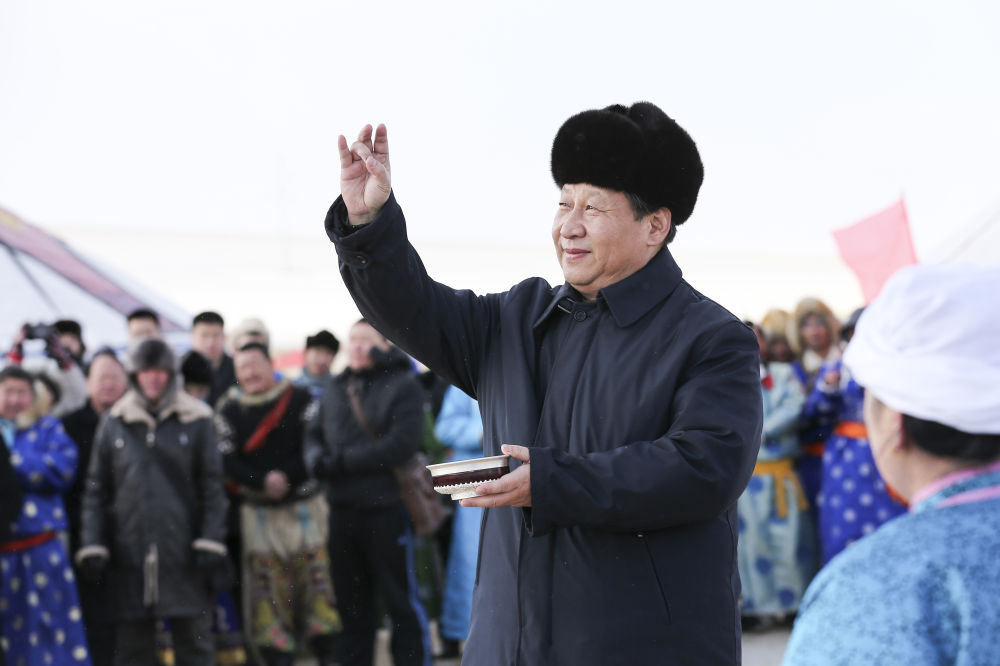 2014年1月,習近平總書記在內蒙古調研看望慰問各族干部群眾。按照蒙古族習俗,總書記用無名指蘸上用銀碗盛著的鮮牛奶彈了三下,借“五畜祈福”寓意,祝福來年風調雨順,五畜興旺,人民幸福安康。