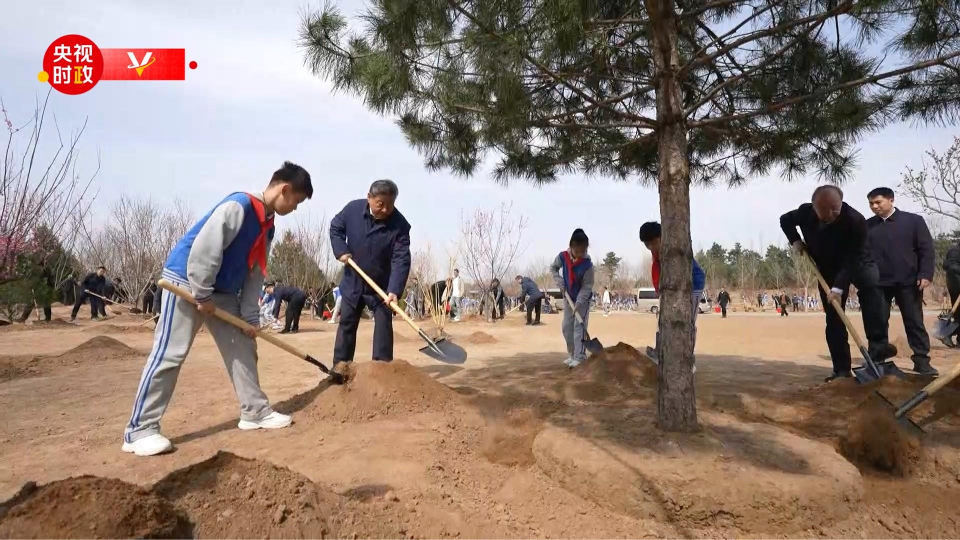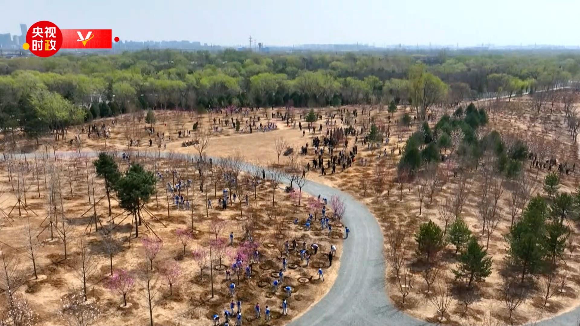 4月3日,習近平等黨和國家領導人來到北京市豐臺區永定河畔,同干部群眾一起參加義務植樹。