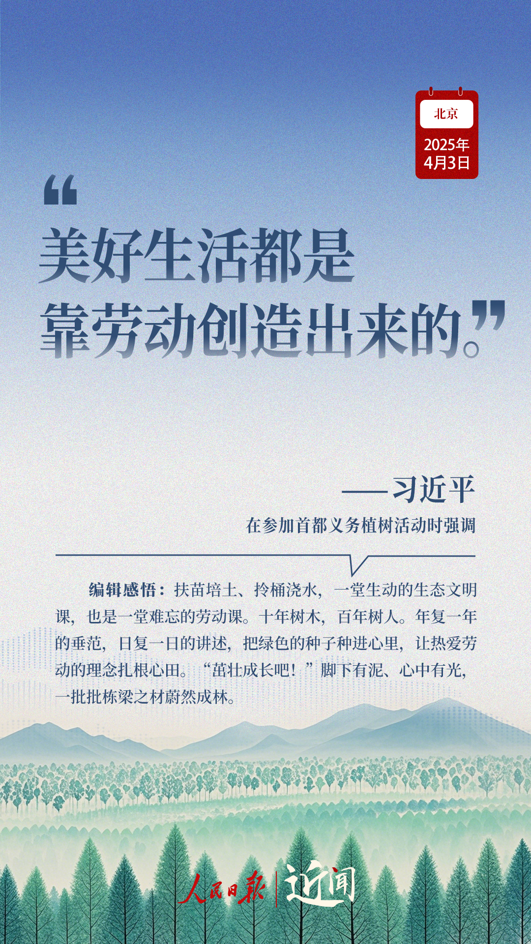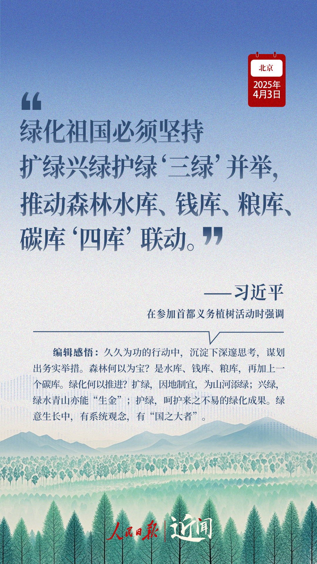 又是一年植綠時。4月3日上午,習近平總書記來到北京市豐臺區永定河畔,同干部群眾一起參加義務植樹。這是他到中央工作后連續18年參加首都義務植樹活動。
