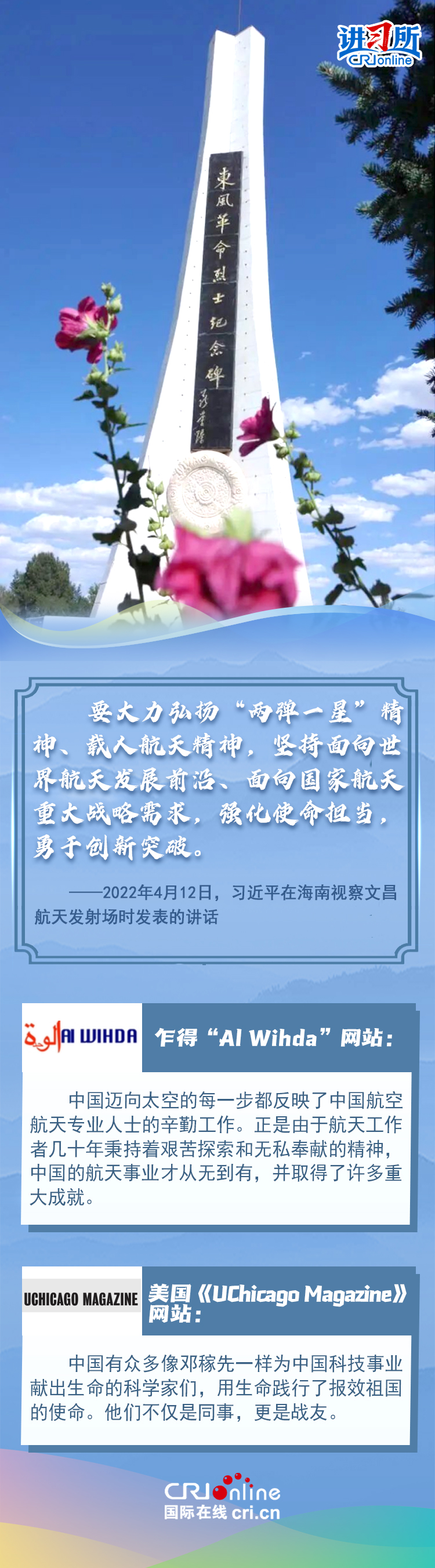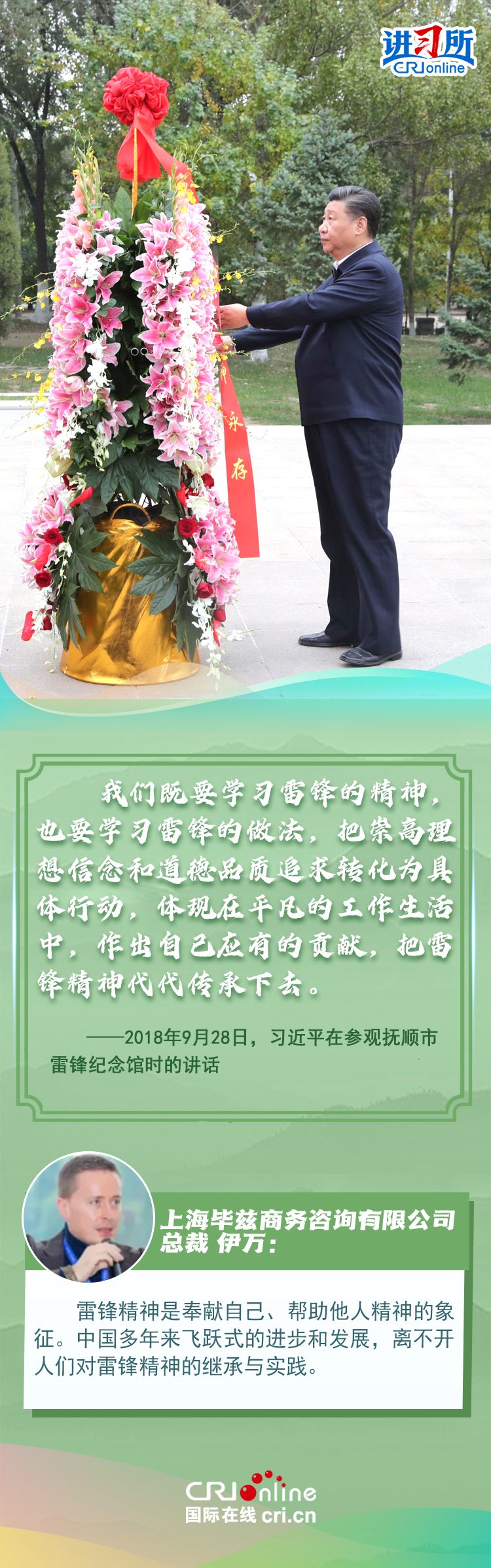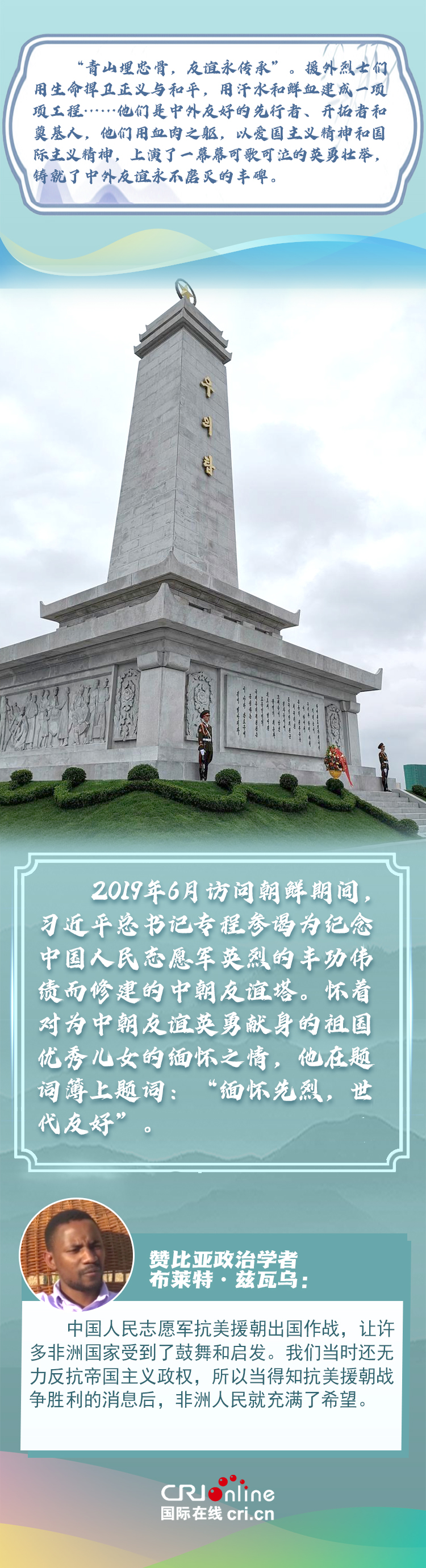 新時代以來,從設立烈士紀念日到出臺英雄烈士保護法,再到加強烈士紀念設施保護,中國崇尚英雄、學習英雄的社會風尚贏得國際社會贊譽。在國際人士眼中,中國多年來飛躍式的進步和發展,離不開人們對先輩意志的繼承與實踐。
