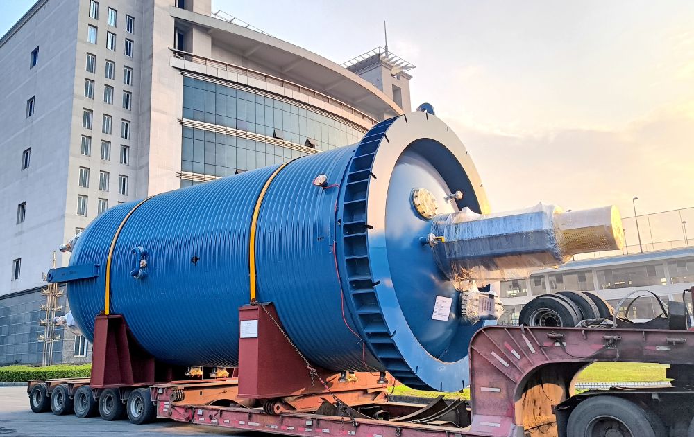 ??2024年1月3日,岷江實業(yè)集團(tuán)生產(chǎn)的大型化工設(shè)備運(yùn)輸出廠。(受訪者供圖)