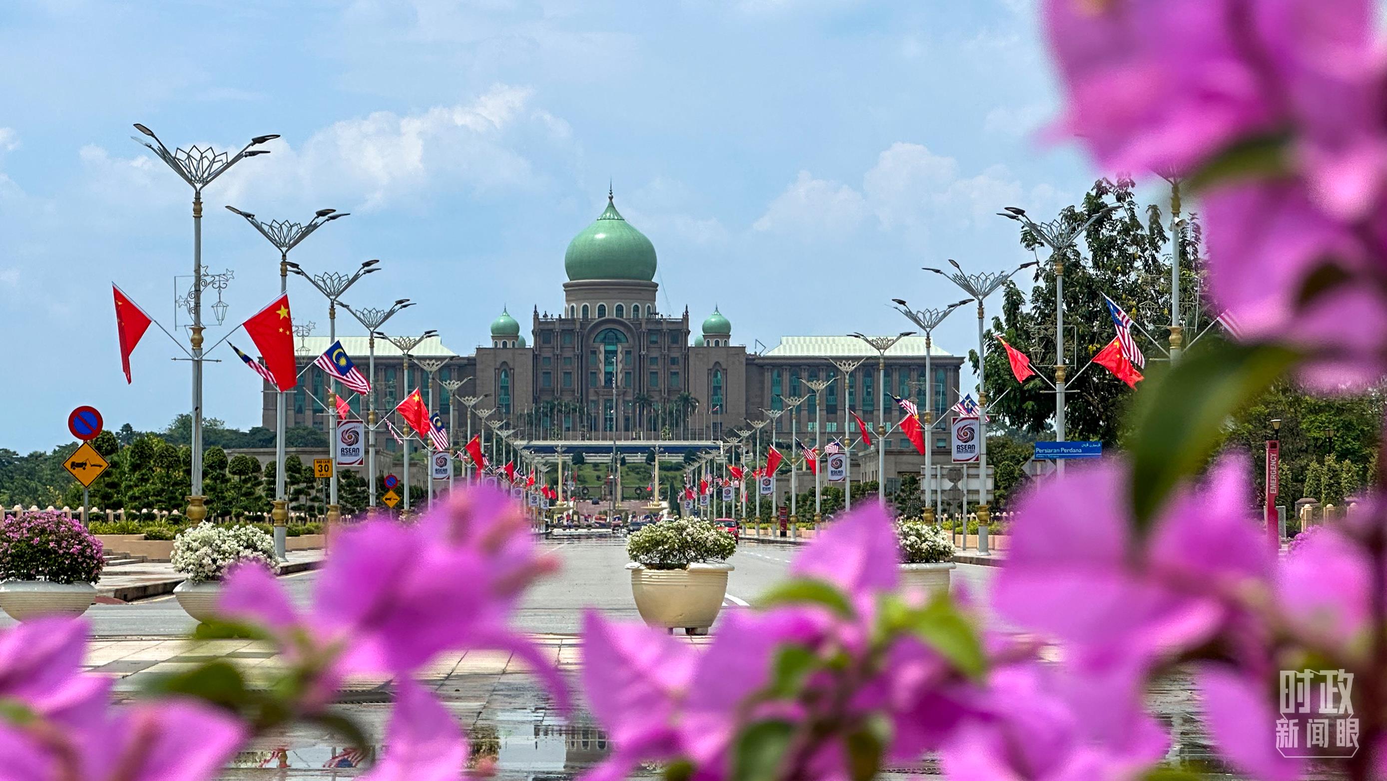 △布特拉加亞街頭,中馬兩國(guó)國(guó)旗迎風(fēng)飄揚(yáng)。(總臺(tái)央視記者劉岳拍攝)