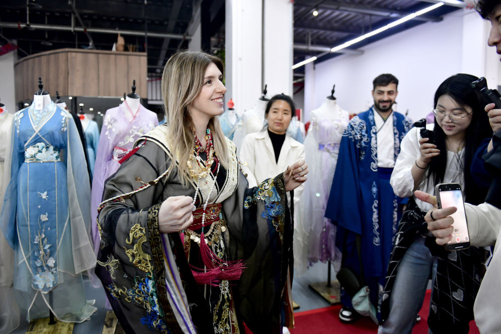 “太有創造力了!”騰龍圖案的漢服令意大利博主卡米拉著迷,“我的社交平臺粉絲也都非常喜歡。”第一次穿上漢服,埃及留學生阿卜杜勒·卡里姆興奮地說:“漢服好美,穿上它好像回到古代中國,能感受到中國文化魅力。”