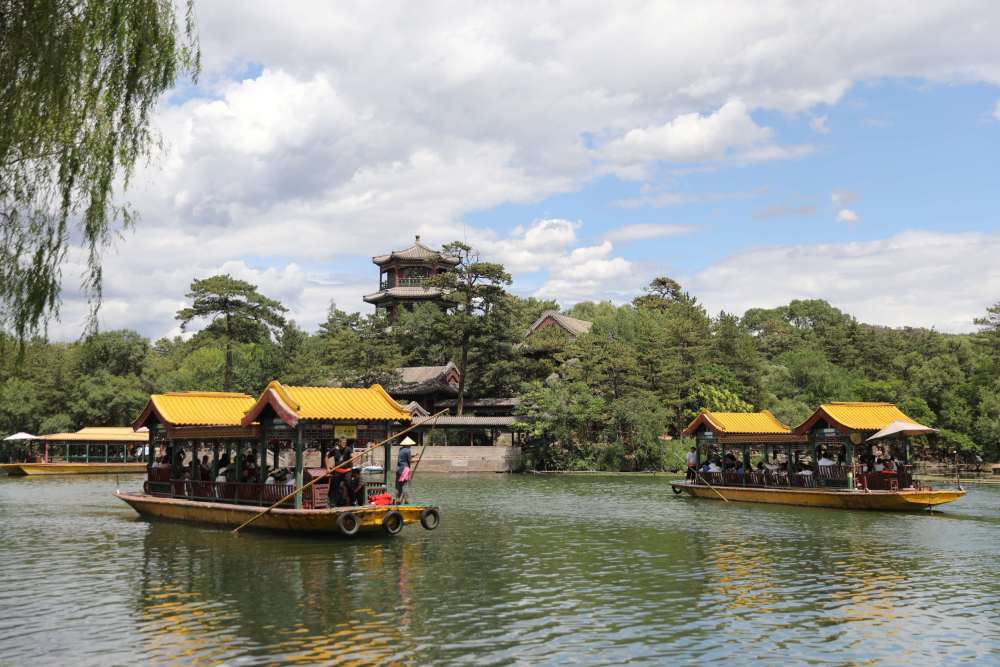 2023年7月8日,游客在承德避暑山莊乘船游覽。