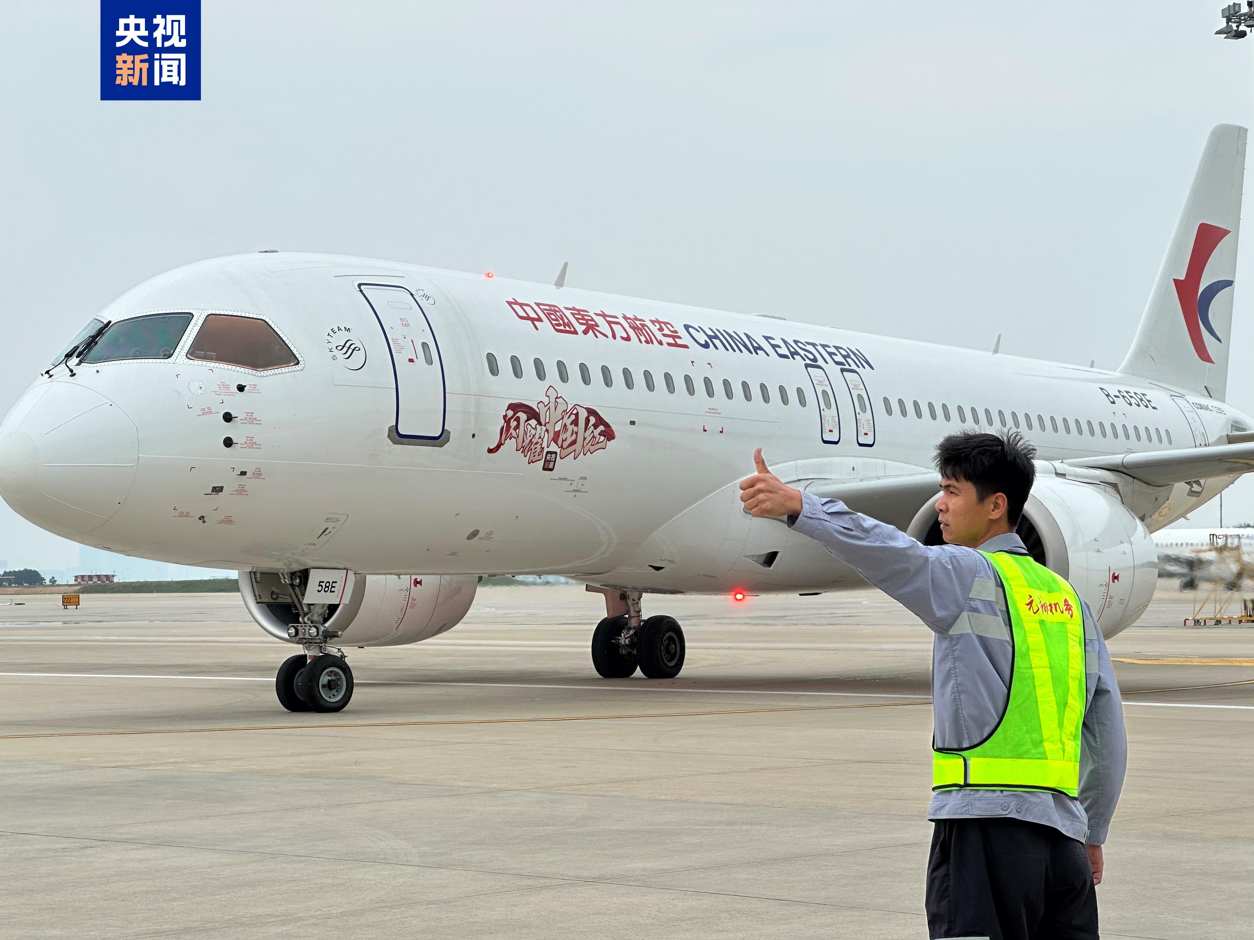 △2025年5月25日,國產大飛機C919執飛MU5247航班從上海虹橋機場出發,搭載著148名旅客抵達廈門高崎國際機場,完成廈門首航。