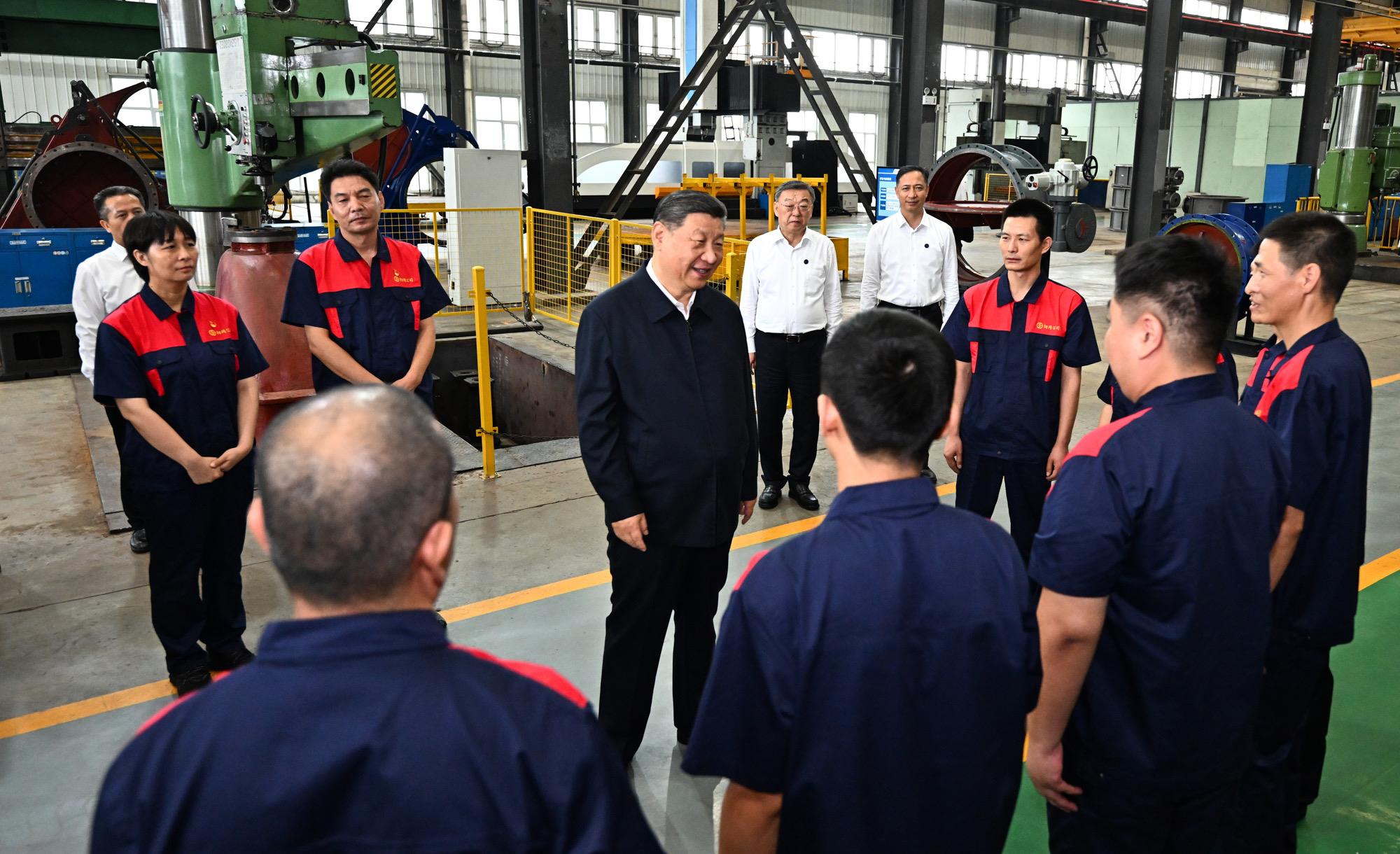 △2025年7月7日,習近平總書記在山西陽泉閥門股份有限公司考察時,同企業員工親切交流。