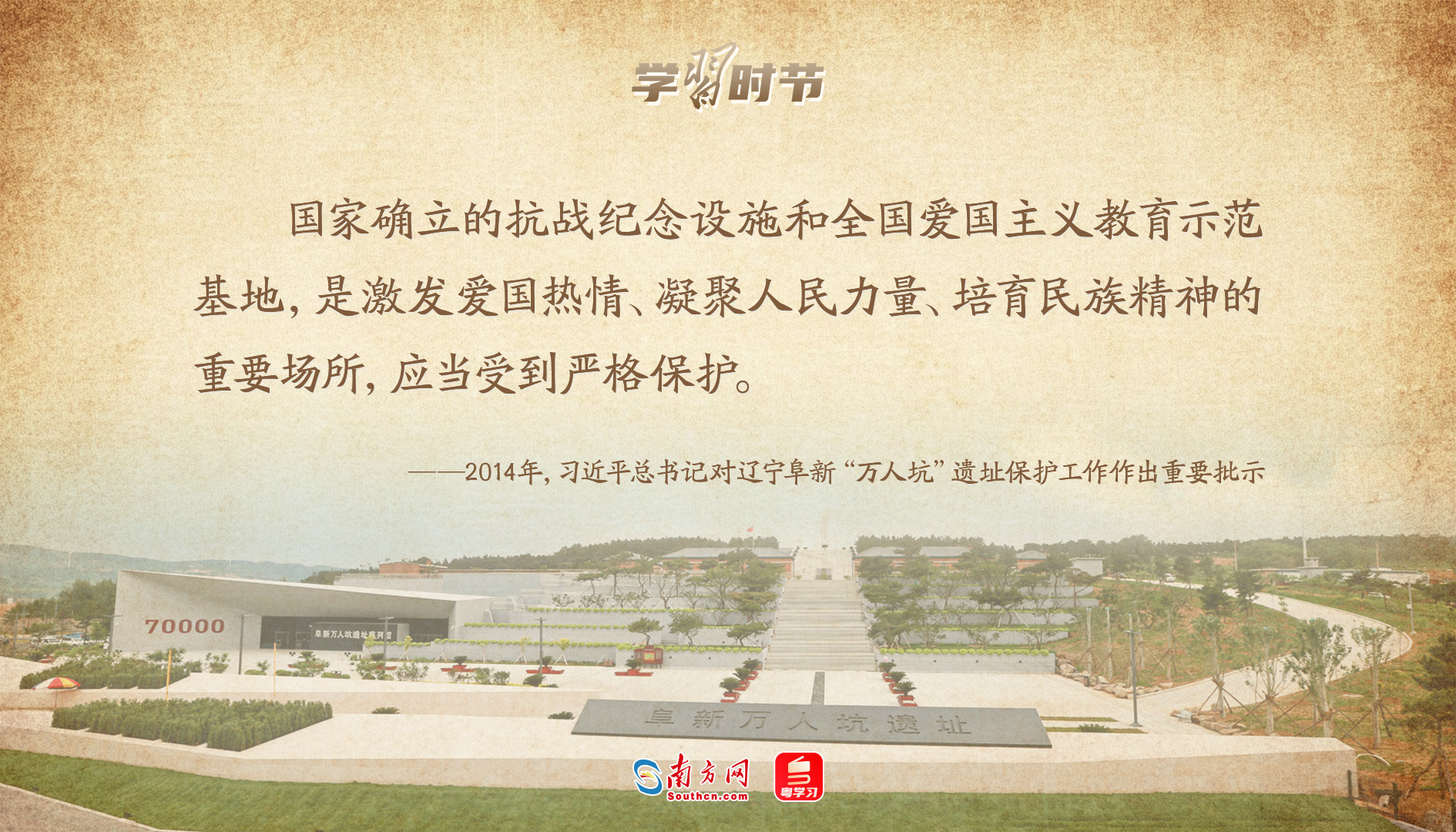 “國家確立的抗戰紀念設施和全國愛國主義教育示范基地,是激發愛國熱情、凝聚人民力量、培育民族精神的重要場所,應當受到嚴格保護。”