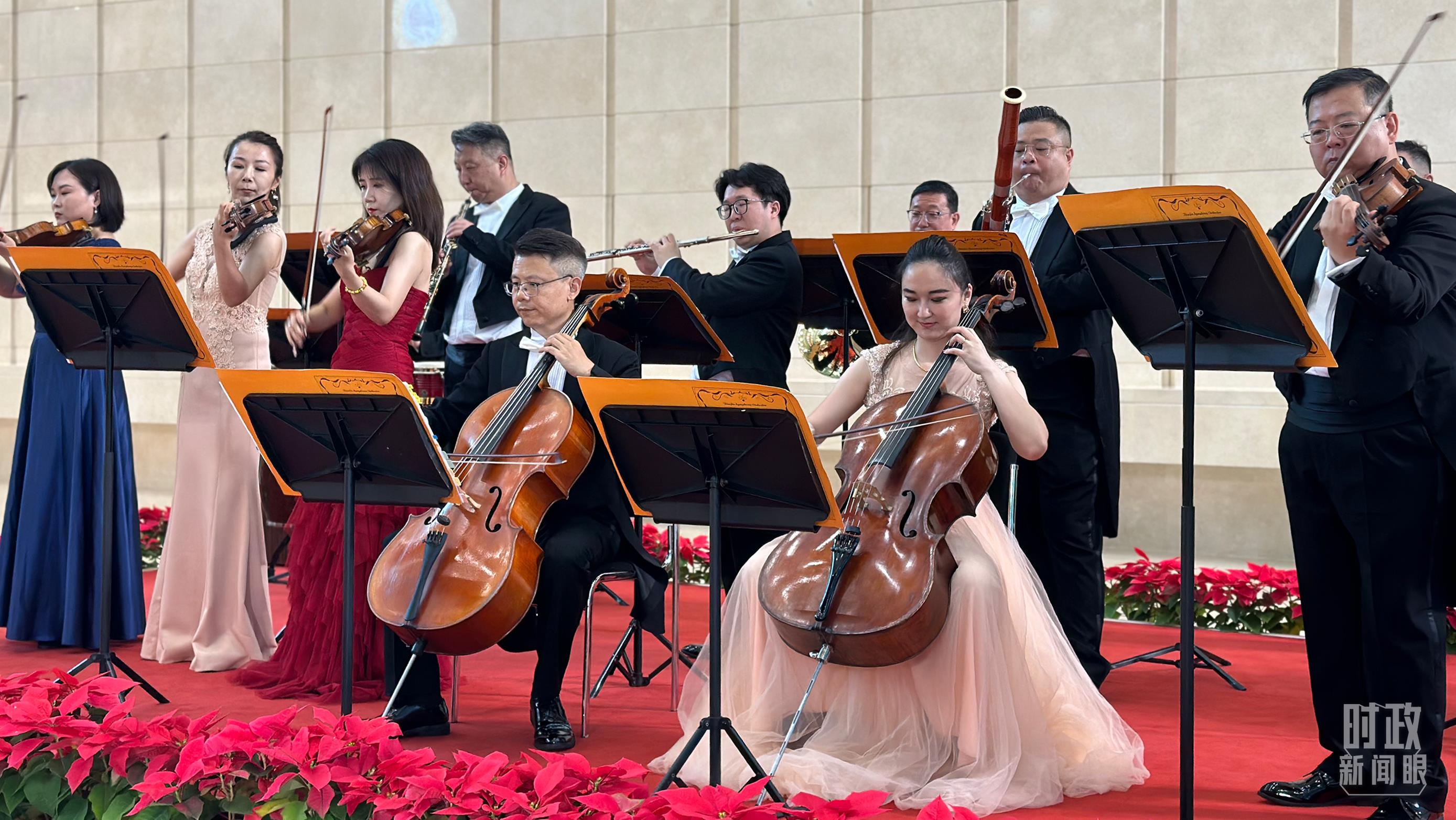 △天津交響樂團演奏與會各國知名樂曲。(總臺央視記者盧心雨拍攝)