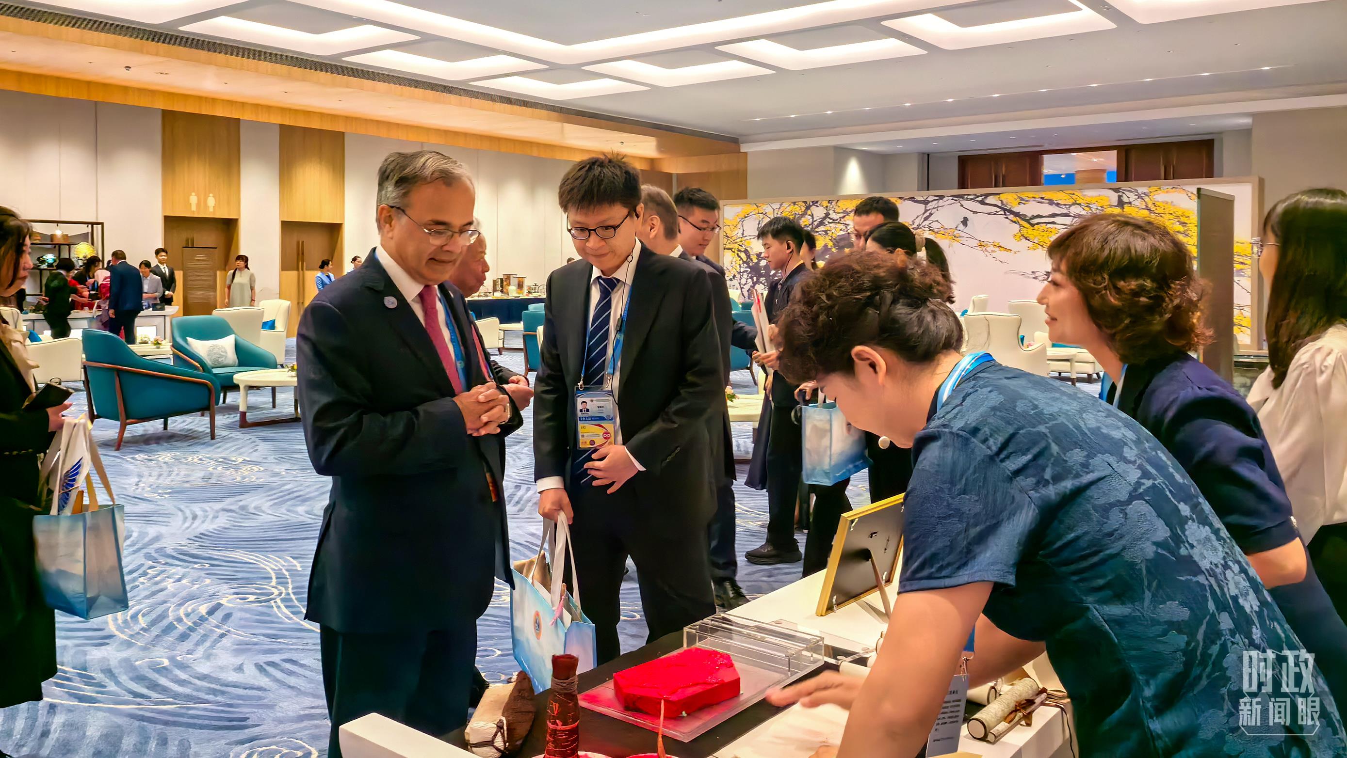 △國際貴賓參觀天津非物質文化遺產展示。(總臺央視記者王子杭、姚瑤拍攝)