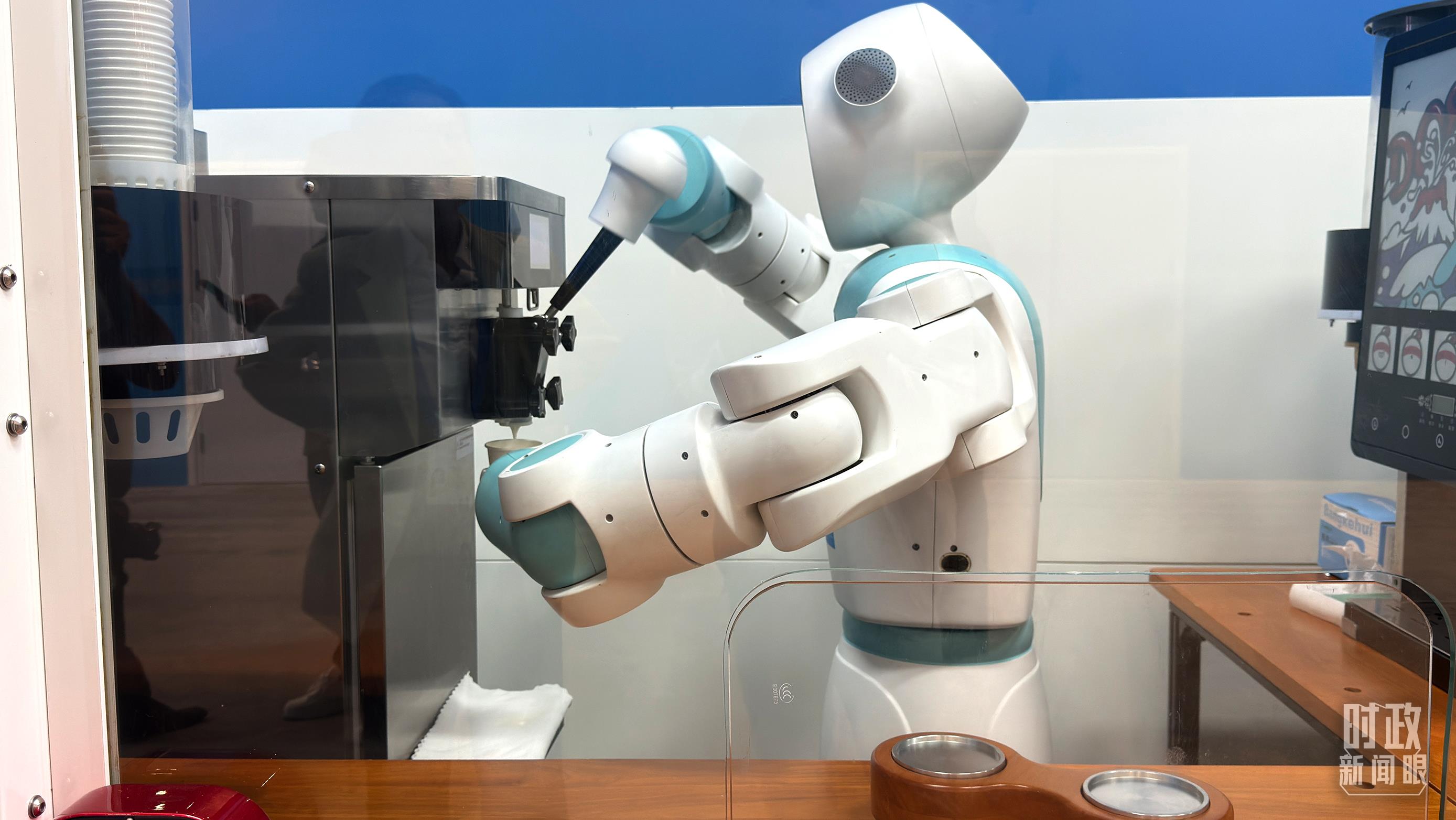 △峰會新聞中心的智能機器人正在制作冰淇淋。(總臺央廣記者張永鵬拍攝)